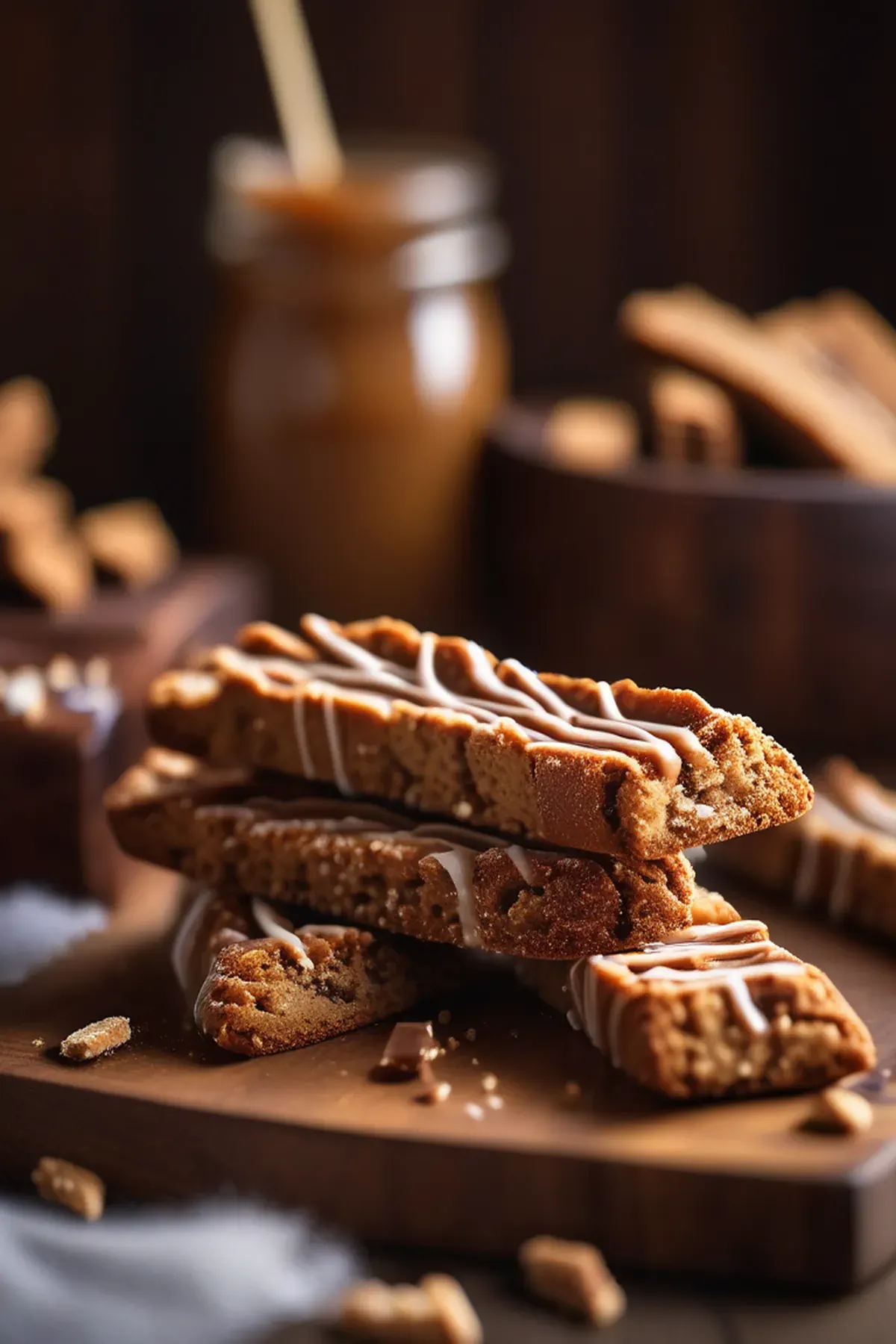 Crunchy biscotti infused with salted caramel, perfect for dunking in your favorite hot beverage.