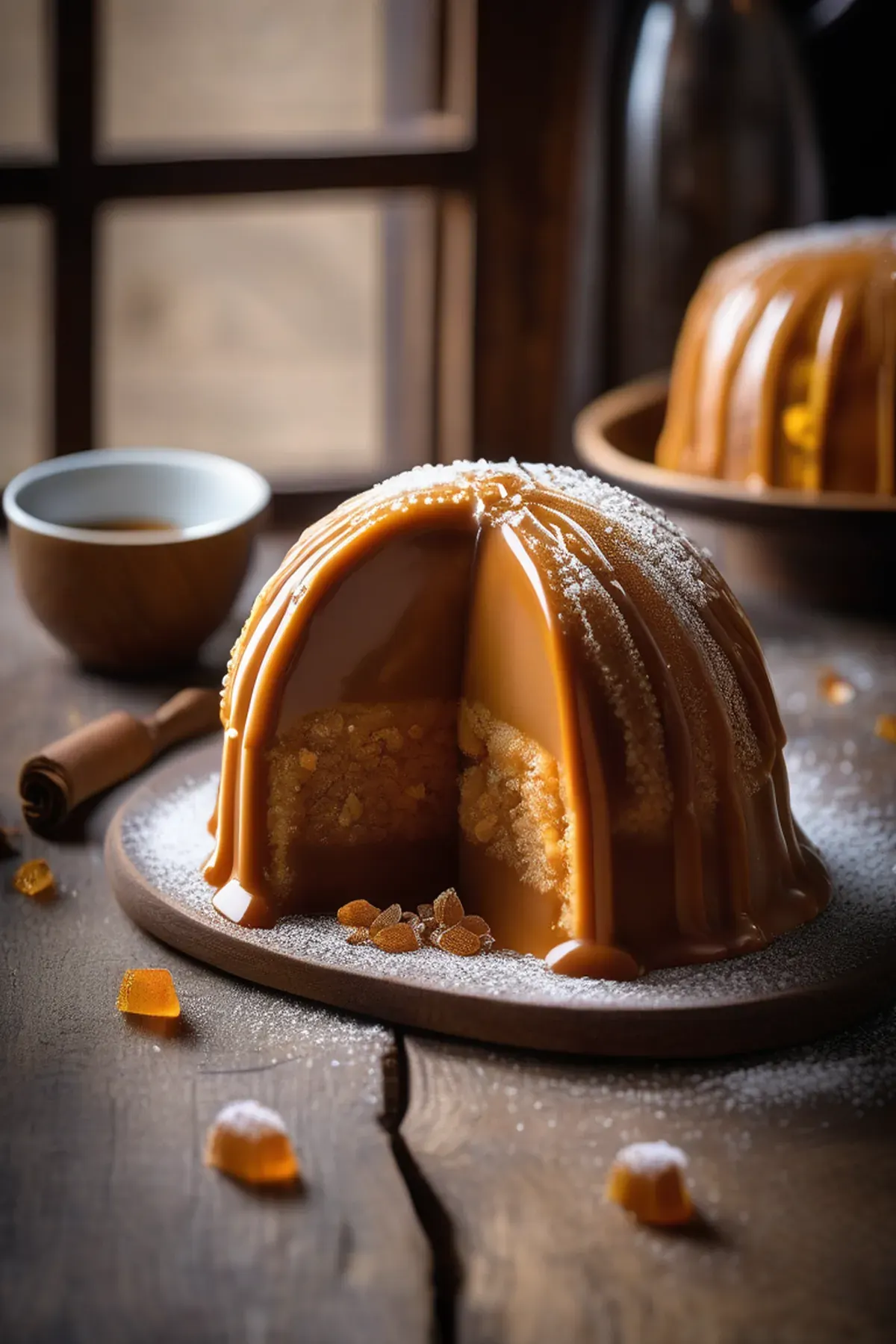 A rich dessert bombe infused with a salted caramel sauce, perfect for special occasions.