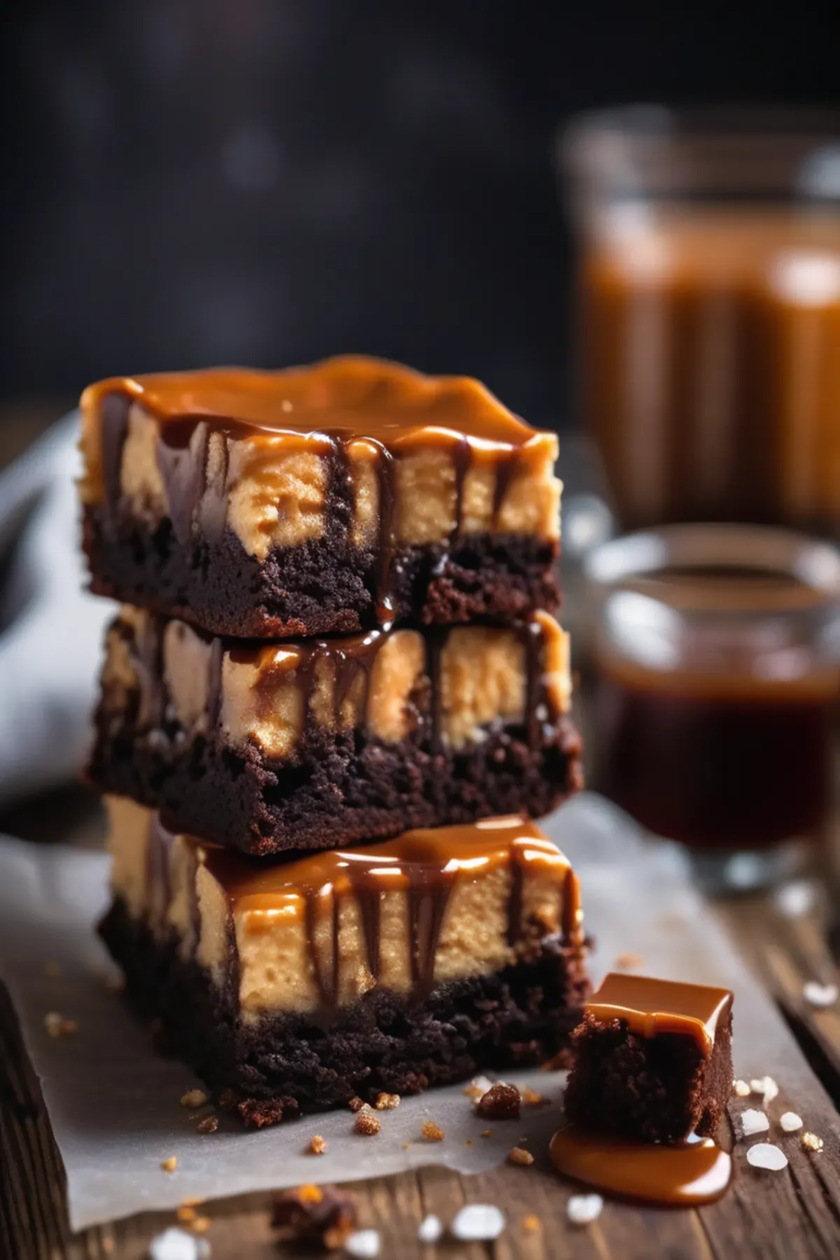 Rich, fudgy brownies filled with a gooey salted caramel and creamy cheesecake centre.
