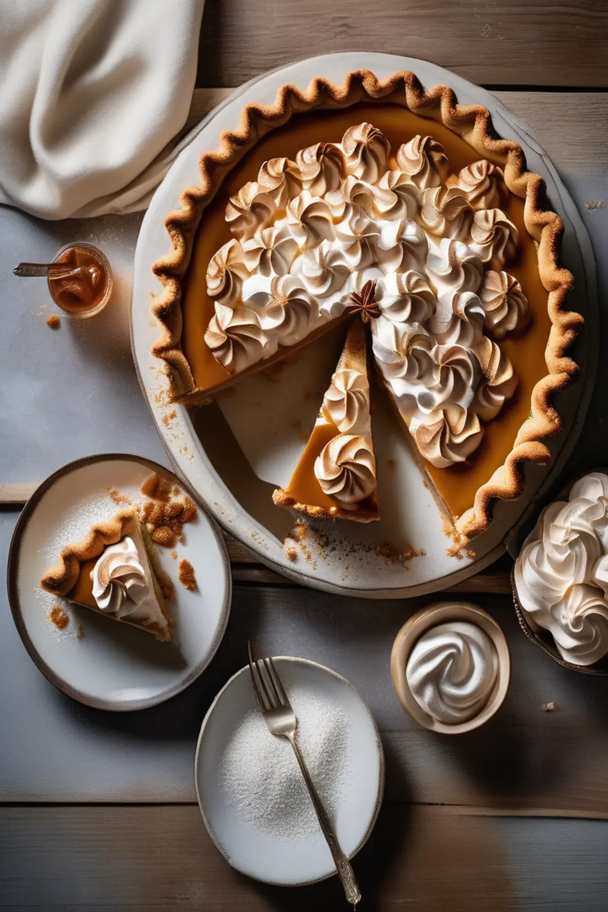 A rich and indulgent dessert featuring a caramel and meringue filling, atop a buttery pastry crust.