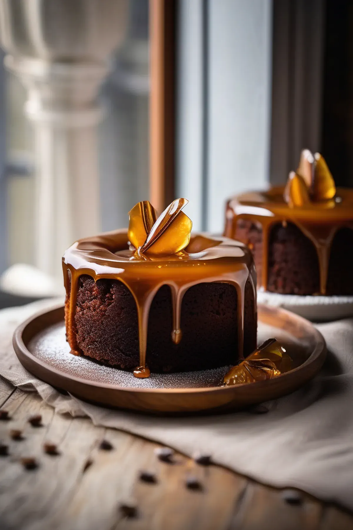 Moist and rich cake infused with the flavors of salted caramel and olive oil, perfect for a special occasion.
