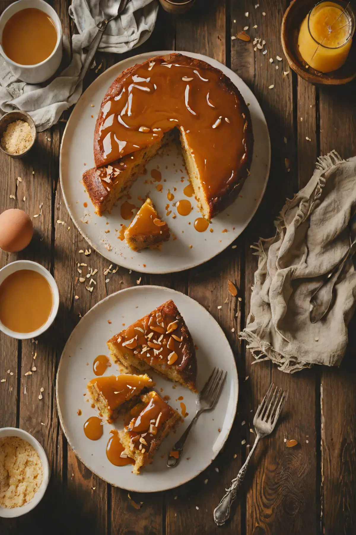 Rich, buttery cake filled with a salted caramel centre, topped with a crunchy sugar glaze.