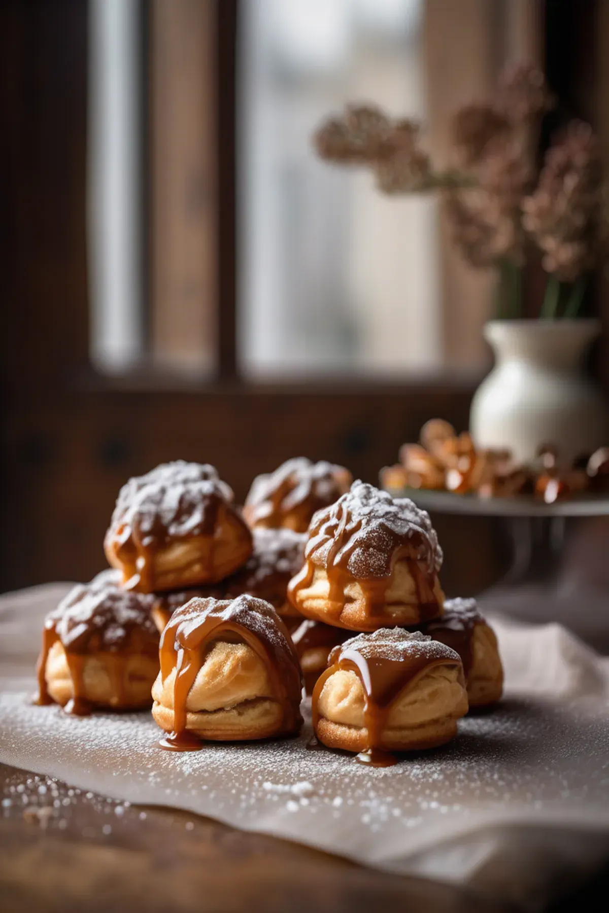 Tip: You can also drizzle the caramel over the top of each profiterole for a more rustic look.