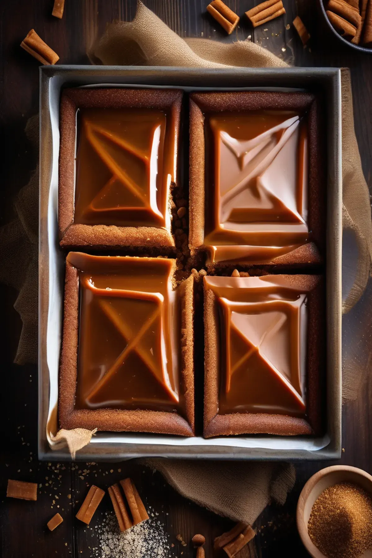 Bake for 25-30 minutes, or until the traybake is golden brown and the caramel is bubbly.