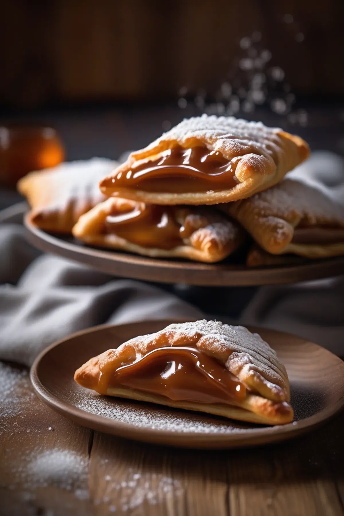 Flaky pastry pockets filled with gooey salted caramel, perfect for a sweet treat.
