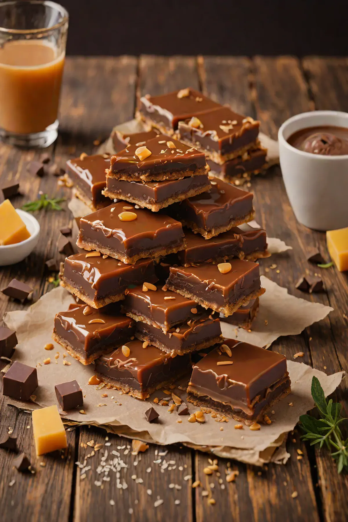 Drizzle the chocolate ganache over the top of the chocolate-covered caramel slices.