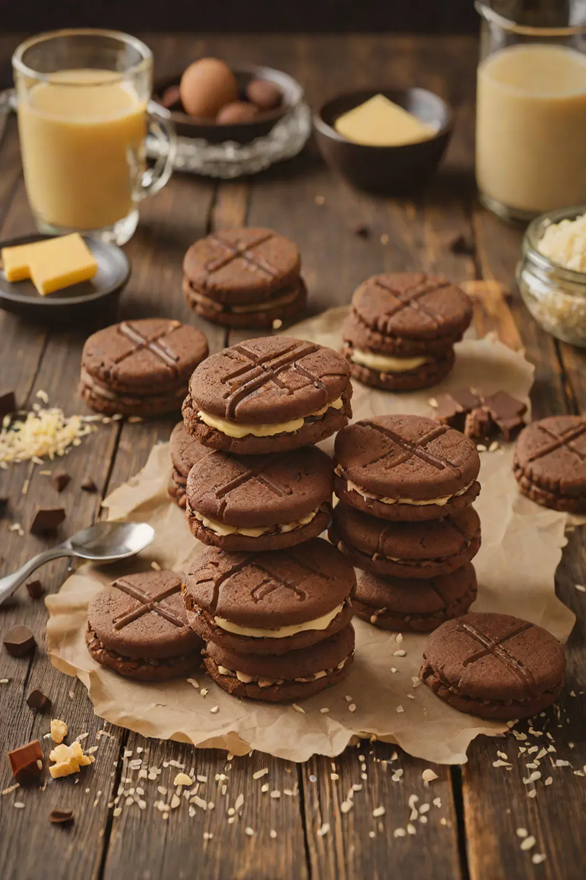 Once the cookies are cool, sandwich a piece of chocolate between two cookies and serve.