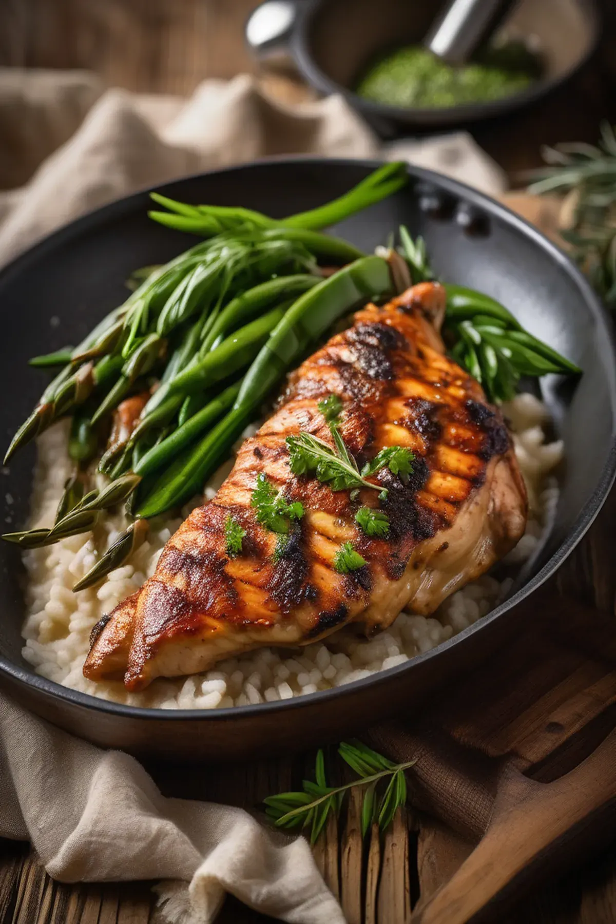 Pour sauce over the chicken and garnish with a little more tarragon or some chopped fresh parsley or green onion if desired.