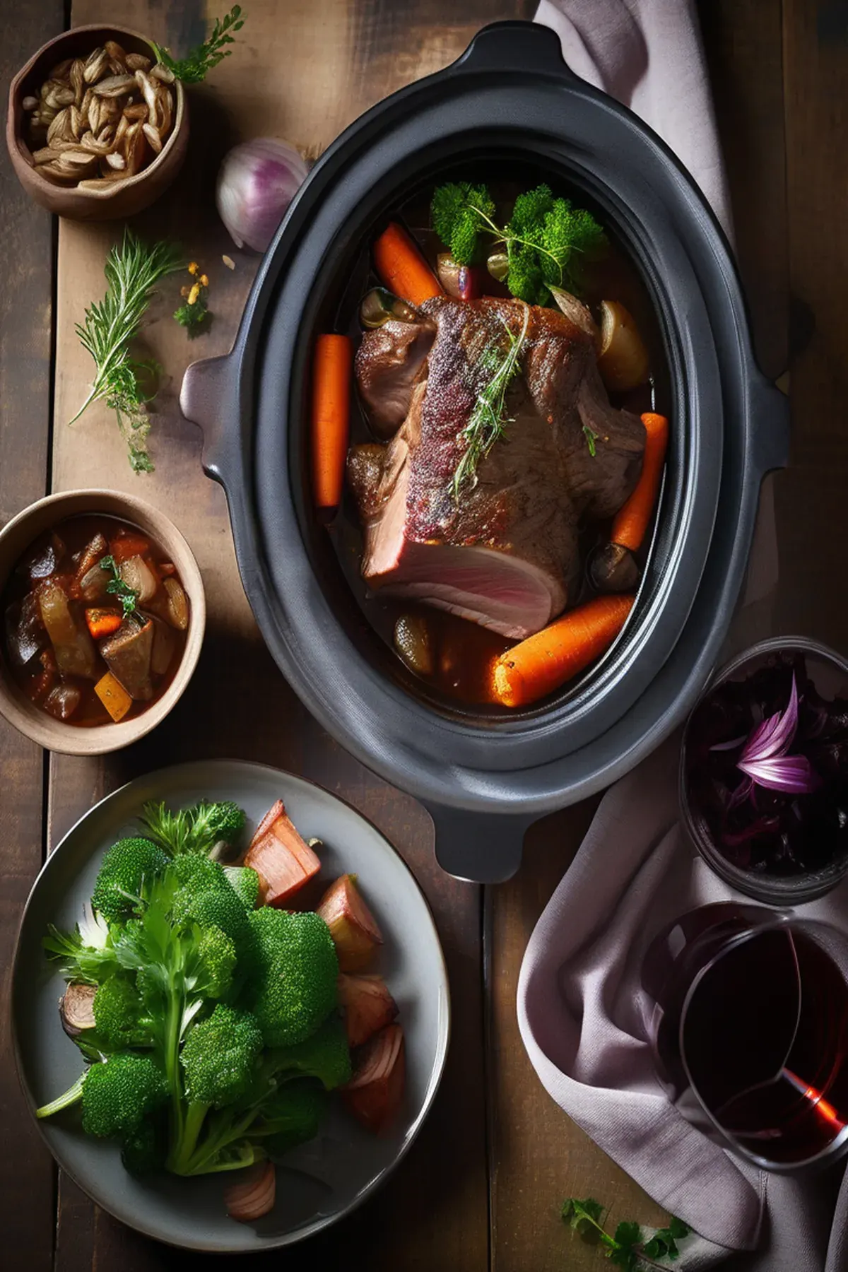There's nothing quite like coming home to a kitchen filled with the aroma of slow cooked lamb. This is my go to recipe when I want something impressive but honestly, it practically makes itself. The beauty of using a slow cooker is that you get tender, fall apart meat with minimal effort and for a fraction of what you'd pay at a restaurant. Red wine isn't just for drinking, it adds wonderful depth to the broth while also containing antioxidants that are good for your heart. Just brown the lamb, toss everything into the cooker, and let it work its magic for over eight hours while you get on with your day.