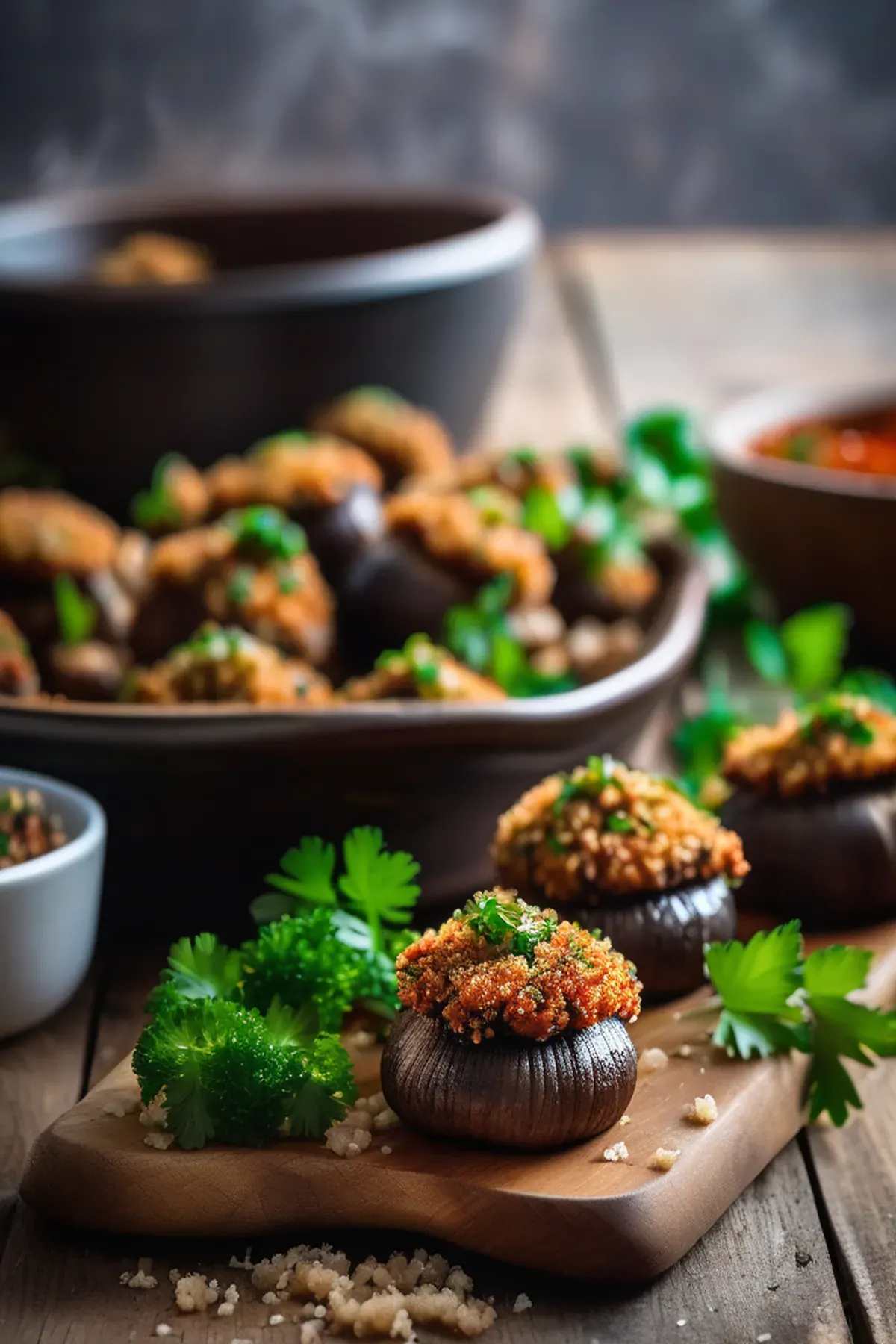 Place the tray in your preheated oven and bake for 25 to 30 minutes until the mushroom caps are tender and the breadcrumb topping is golden brown and crispy.