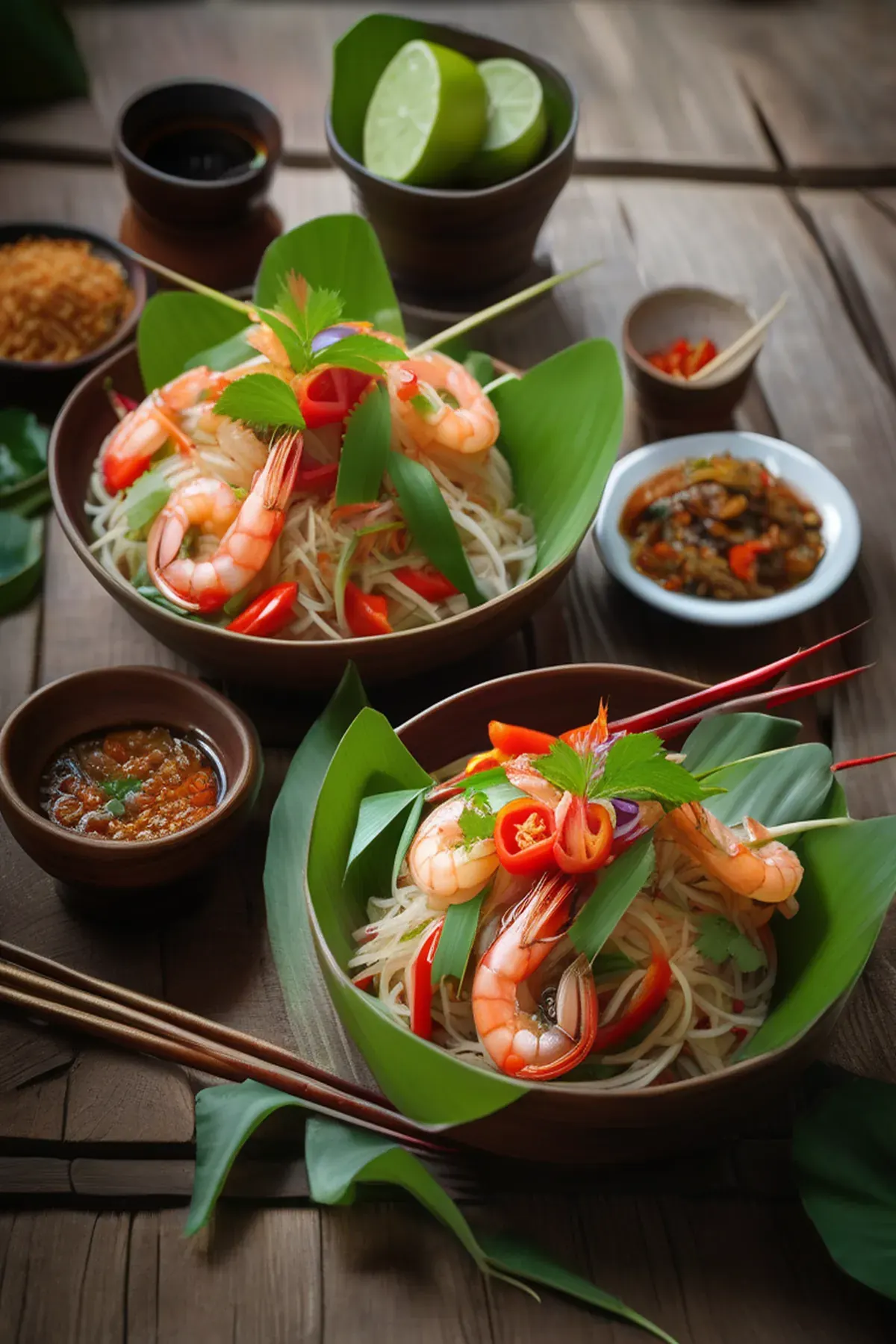 A spicy and sour Thai salad made with green papaya, tomatoes, and chilies.