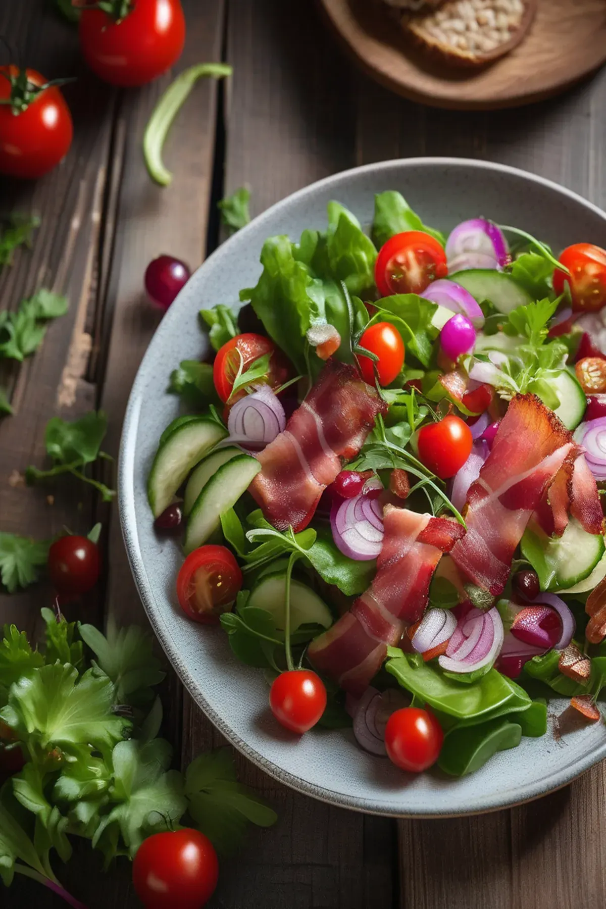 My family absolutely loves this Spanish Bacon Salad, and I'm thrilled to share it with you because it's genuinely one of the easiest weeknight dinners to pull together. The whole thing comes together in under an hour, which is perfect when you're short on time but want something that tastes like you actually spent hours in the kitchen. Spanish bacon brings this wonderful smoky, salty depth that transforms simple greens into something really special, and the beauty of it is that you probably have most of these ingredients already on hand. Plus, all those fresh vegetables mean you're getting tons of nutrients and fiber to keep you feeling satisfied and energized. Trust me, once you make this, it becomes a go to meal.