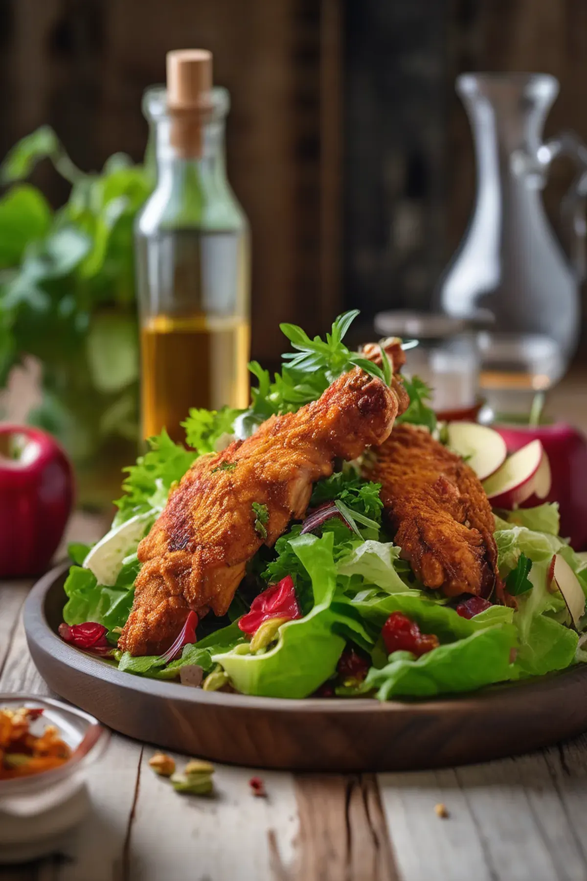 This Spanish crispy chicken salad is one of my go to weeknight dinners because it comes together in just under an hour and tastes absolutely restaurant quality. The crispy paprika seasoned chicken is the star here, paired with fresh greens and a tangy apple cider vinegar dressing that brings everything to life. Cherry tomatoes are packed with lycopene, a powerful antioxidant that's great for your heart, and they add wonderful bursts of sweetness throughout. What I love most is how simple and budget friendly this recipe is, using basic pantry staples that most of us already have on hand. It's the kind of meal that feels fancy enough to impress but honest enough for a casual dinner at home.