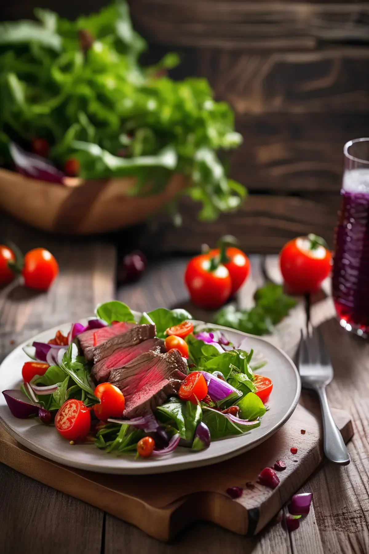 Tip: Serve the steak on top of the salad and garnish with pita bread croutons.