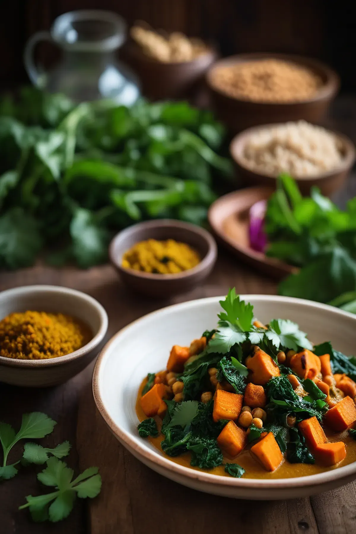 Spiced greens, sweet potato & chickpea curry