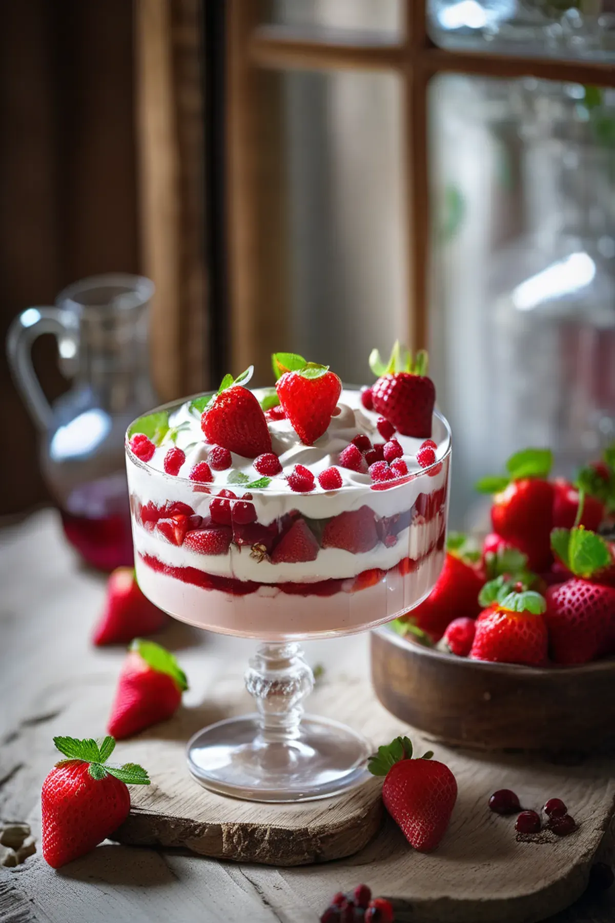 This strawberry and redcurrant syllabub trifle is one of my absolute favorite desserts to make when I want something that looks impressive but doesn't require hours in the kitchen. The beautiful thing about it is that you can have this stunning layered pudding ready in just thirty minutes, which makes it perfect for dinner parties or whenever you're craving something special. Strawberries are packed with vitamin C and antioxidants that support your immune system, so you can feel good about indulging. The combination of soft Madeira cake, silky syllabub, and bright berries creates the most delicious contrast of flavors and textures, and honestly, it's almost embarrassingly simple to assemble.