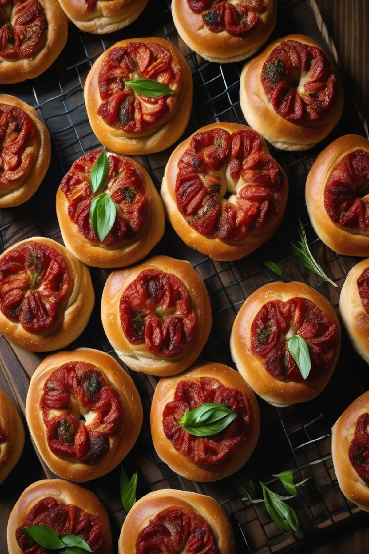 Soft, pillowy buns infused with the rich, tangy flavor of sun-dried tomatoes and fresh basil, perfect for serving alongside pasta or enjoying with a spread of creamy cheese.
