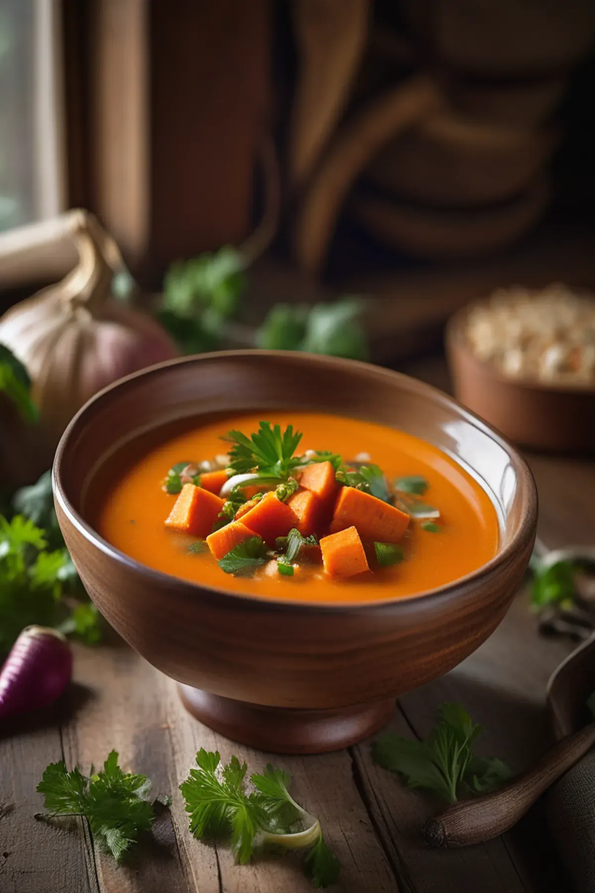 Ladle the soup into bowls and garnish with fresh parsley, cilantro, and a sprinkle of nutmeg, if desired.