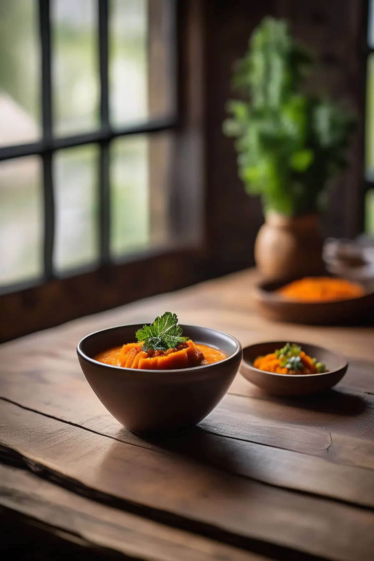 Serve the Sweet Potato Velouté hot, garnished with chopped fresh herbs or a dollop of sour cream, if desired.