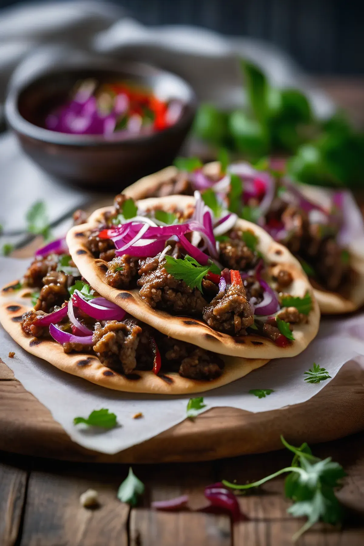 Sweet & spicy lamb flatbreads
