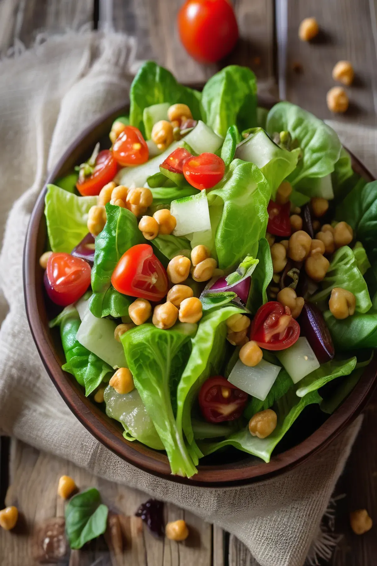 My Sicilian grandmother has served this salad at every meal for as long as I can remember, and I finally understand why. It comes together in just ten minutes, making it perfect for busy weeknights when you need something fresh and satisfying. The chickpeas provide a wonderful protein boost and are packed with fiber to keep you full, while the crisp romaine, cucumber, and tomato give you that satisfying crunch she loves. What I appreciate most is how inexpensive it is to make, especially when you use canned chickpeas. There's nothing fancy here, just quality ingredients, a simple vinaigrette, and the kind of straightforward preparation that has sustained her family for generations. You'll find yourself returning to this one again and again.