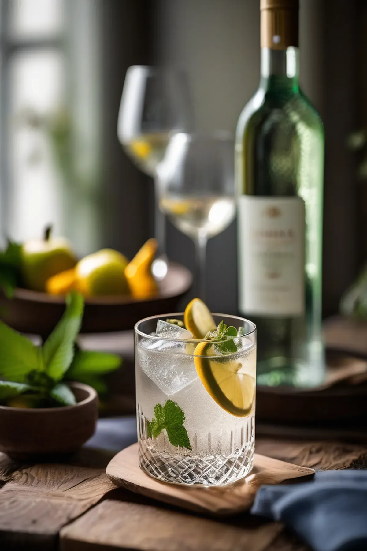 Stir gently, then drop in a strip of lemon zest and a mint sprig to garnish.