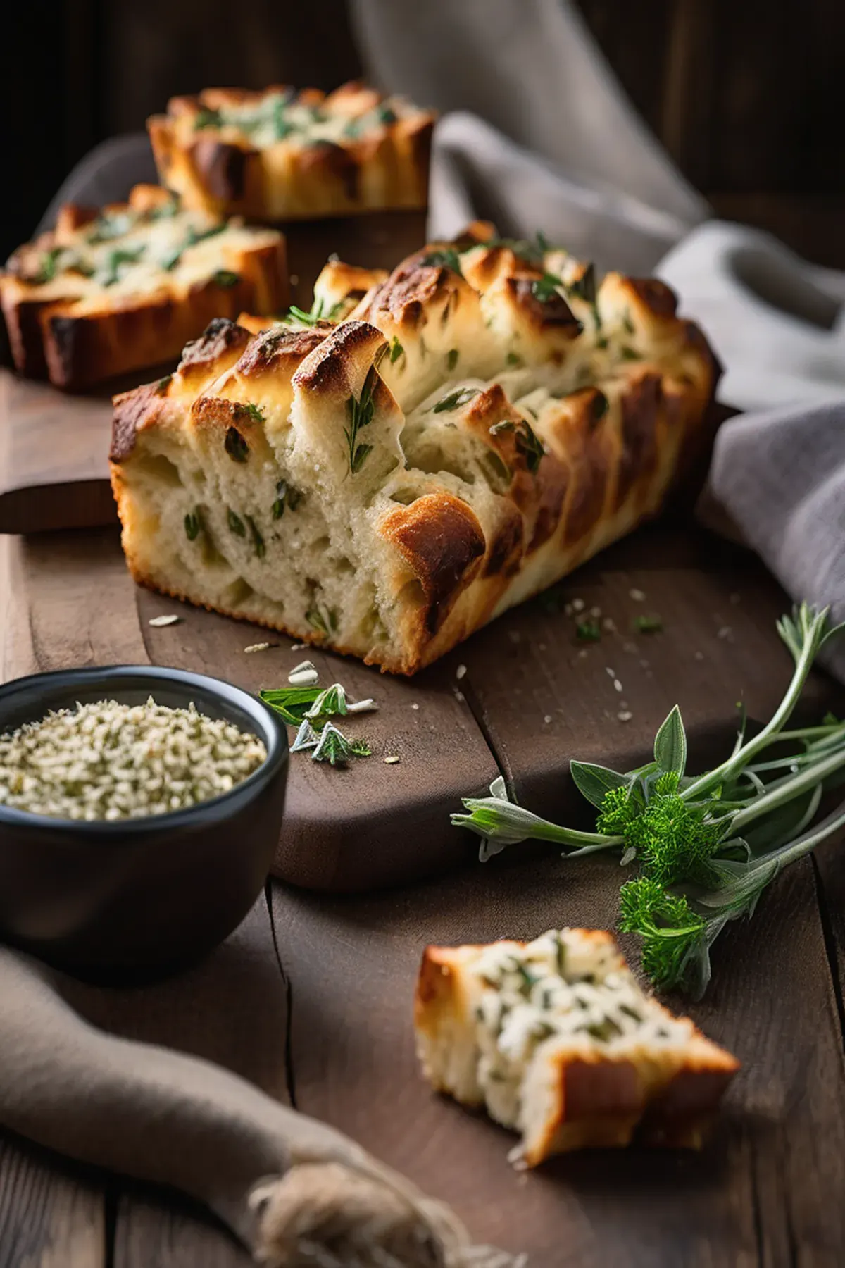 Using a serrated knife, slice the loaf into 1-inch-wide slices, going almost all the way through, but leaving the bottom of the loaf uncut. Turn the loaf a quarter turn and hold the slices together with your hand as you carefully slice again, perpendicular to the first cuts, to make squares.