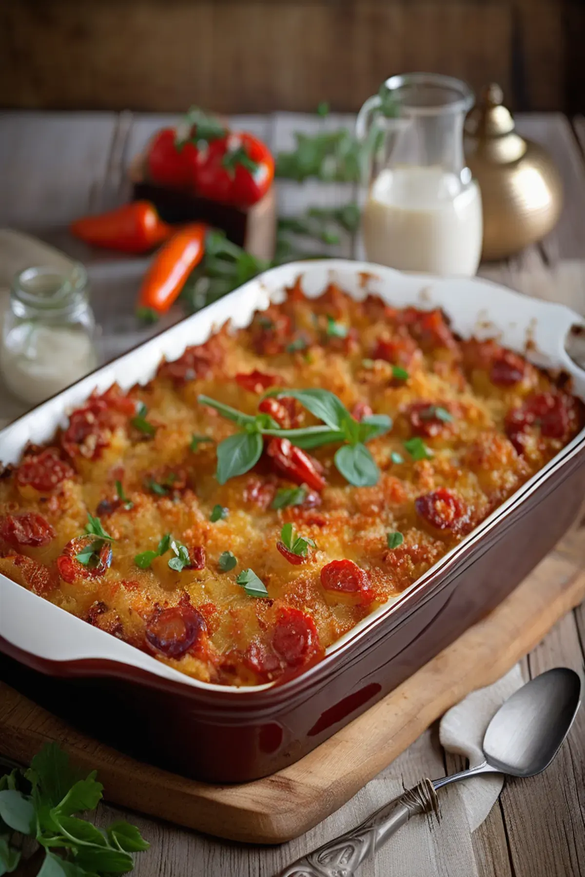 Let the casserole cool on a wire rack for 20 minutes, then garnish with the basil, if using, and serve. Refrigerate leftovers, tightly covered, for up to 3 days. Love the recipe? Leave us stars and a comment below!