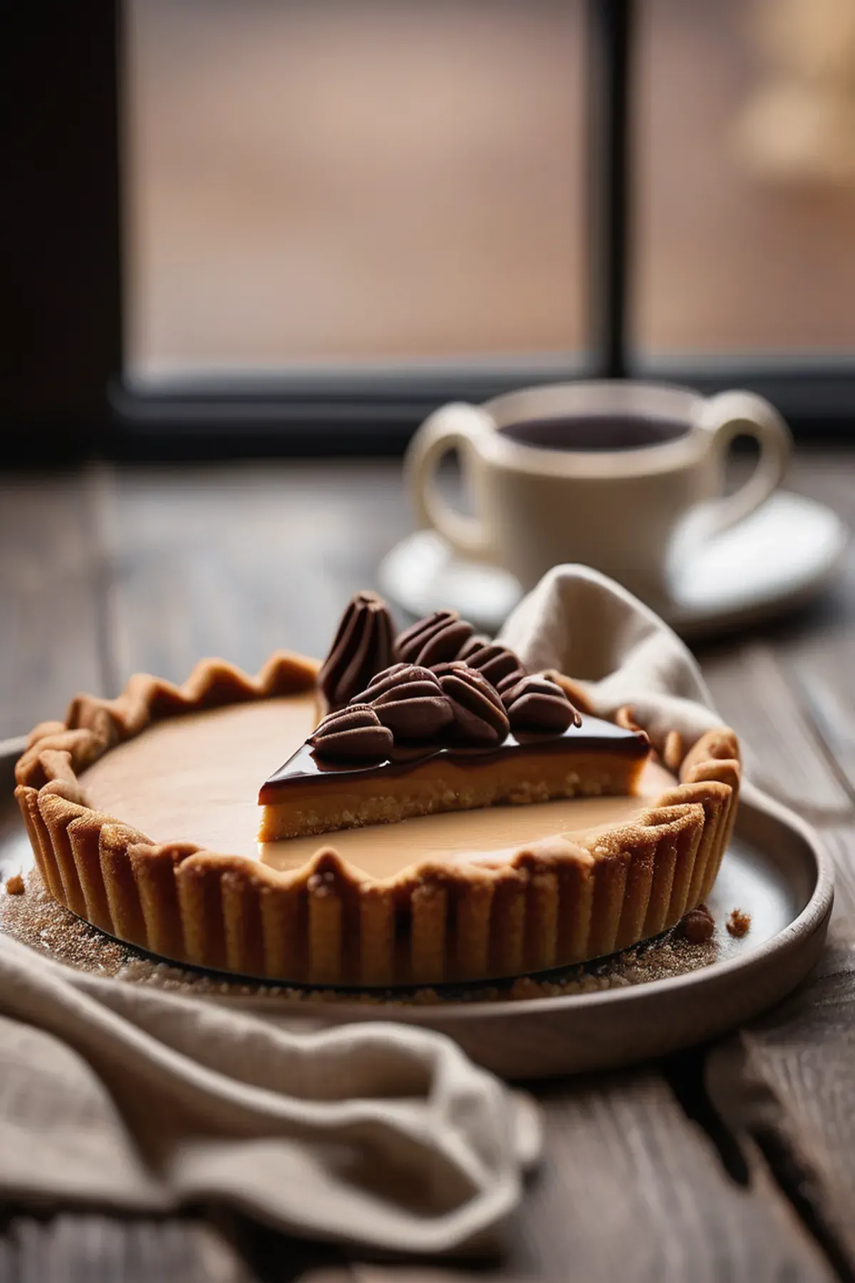 A rich and creamy dessert with a smooth toffee filling, nestled in a buttery pastry crust.