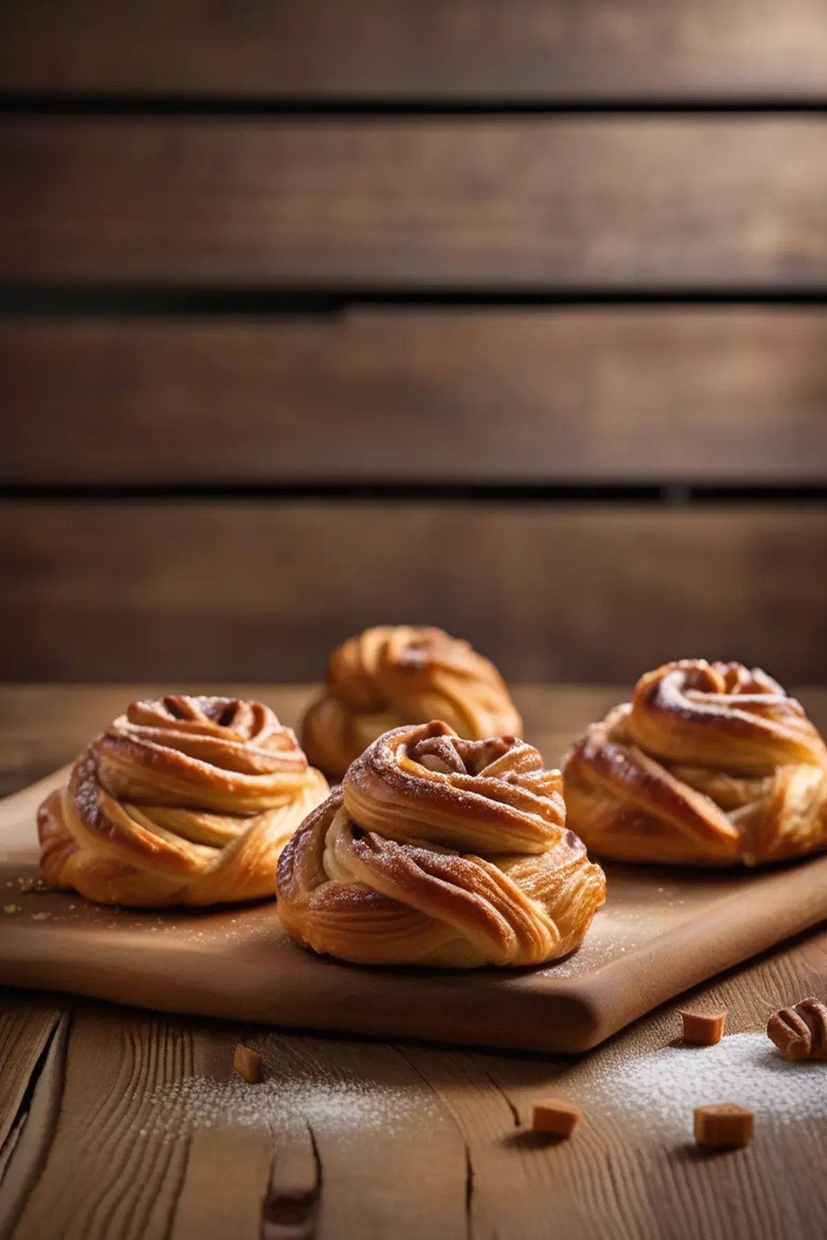 A sweet pastry filled with a rich toffee filling and topped with a crumbly pastry crust.