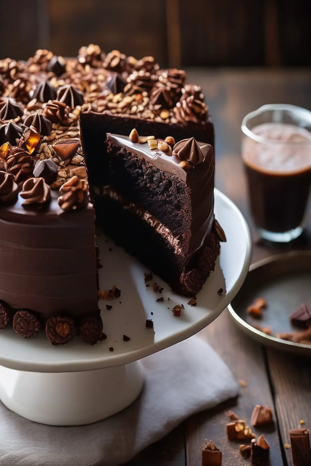 Moist and indulgent, this rich cake combines the deep flavors of toffee and devil's food chocolate.