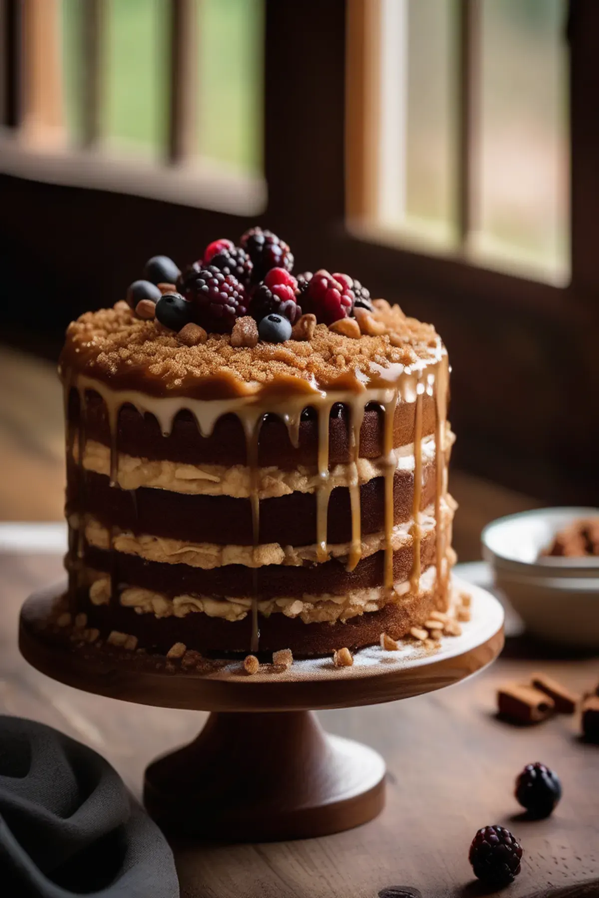 A rich and indulgent cake featuring a gooey toffee center, perfect for satisfying any sweet tooth.