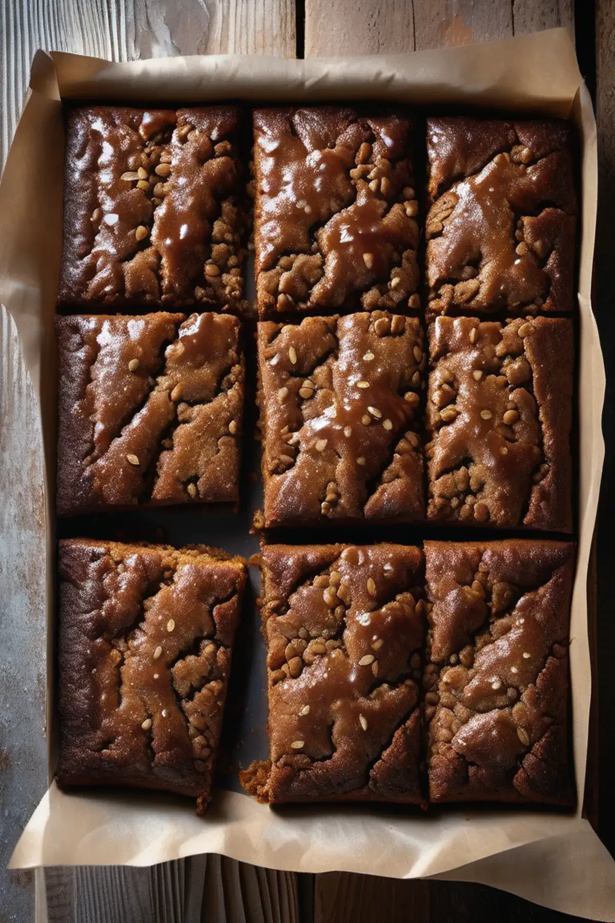 Sweet, gooey Treacle Brookies with a crumbly oat topping, made with golden syrup and a hint of spice.