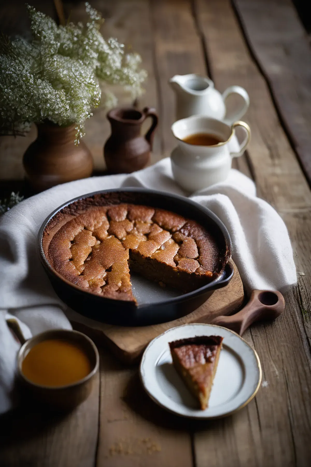 A sweet and sticky dessert made with treacle, sugar, and eggs, perfect for a special occasion.