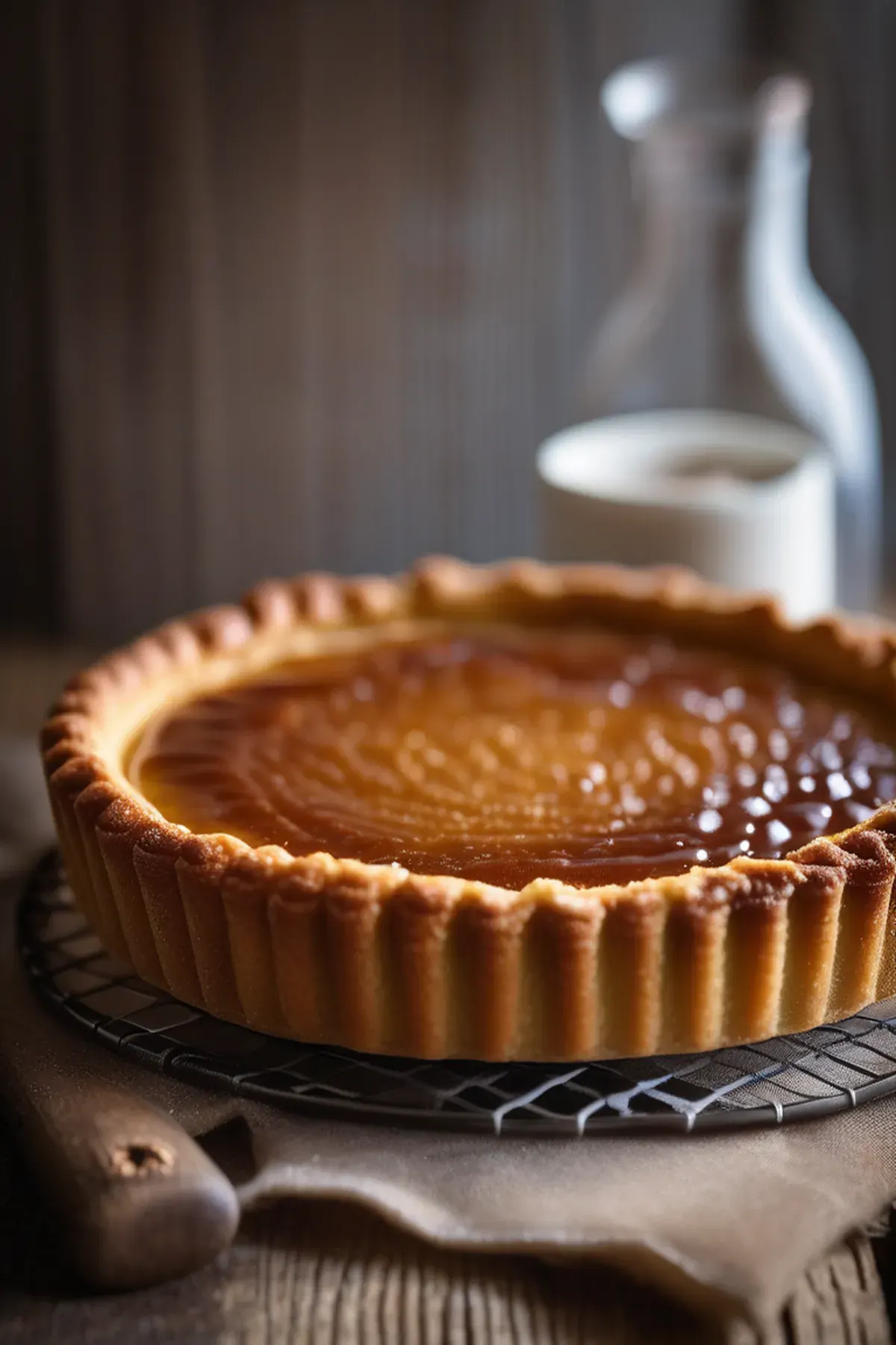 Pour the treacle mixture into the baked pastry shell. Pour the custard mixture into the treacle layer.