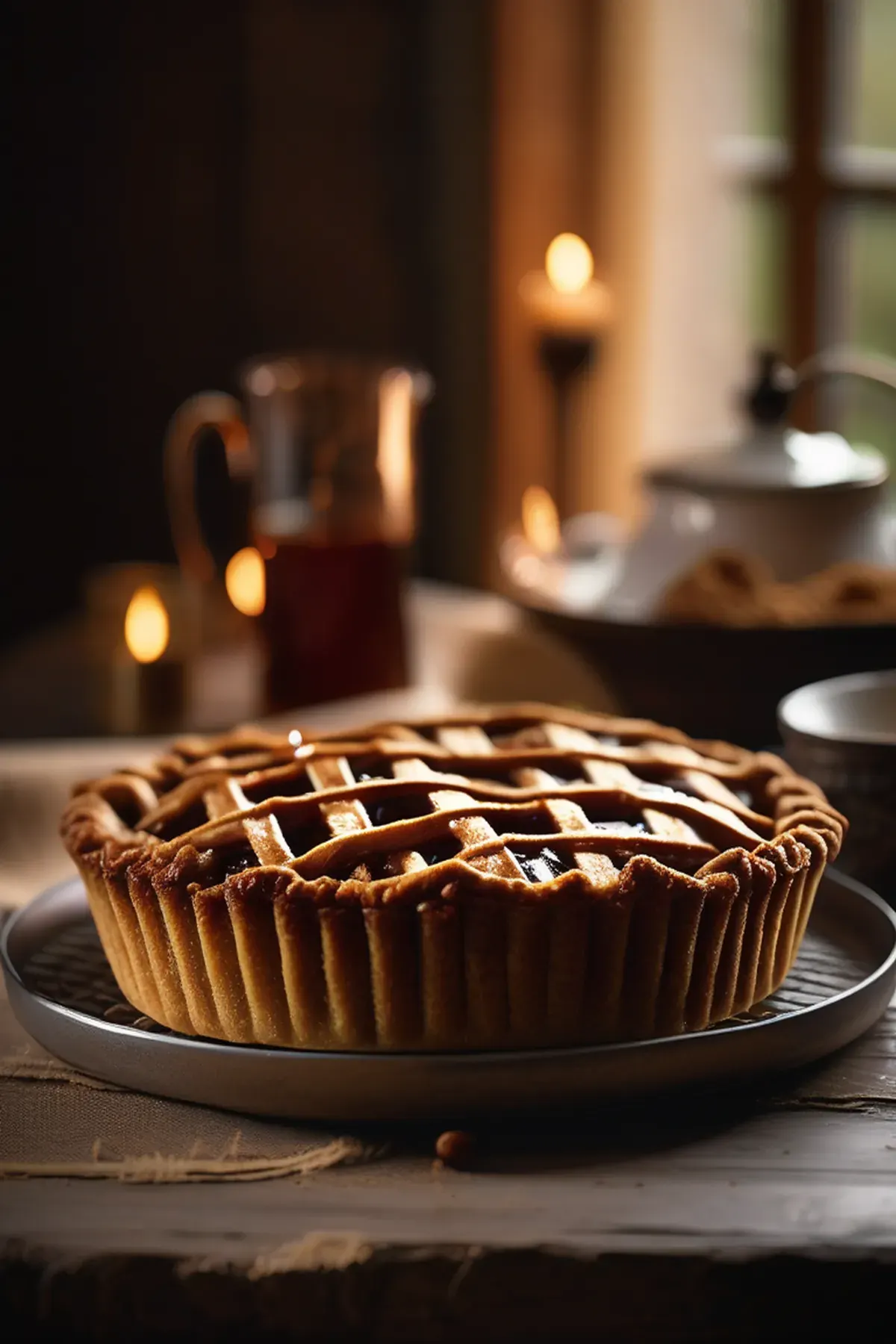 A sweet and sticky pie filled with a rich treacle filling, topped with a crumbly lattice crust.