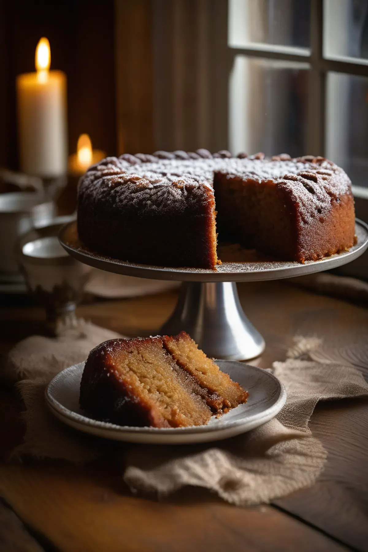 A sweet and sticky cake featuring a caramelized treacle topping, perfect for special occasions.