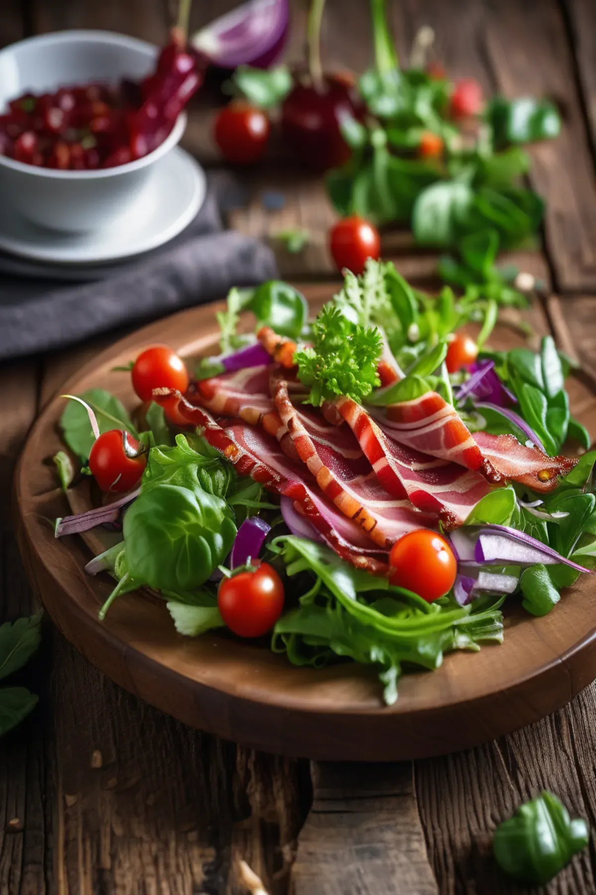 Tip: Arrange the crispy bacon pieces on top of the salad.