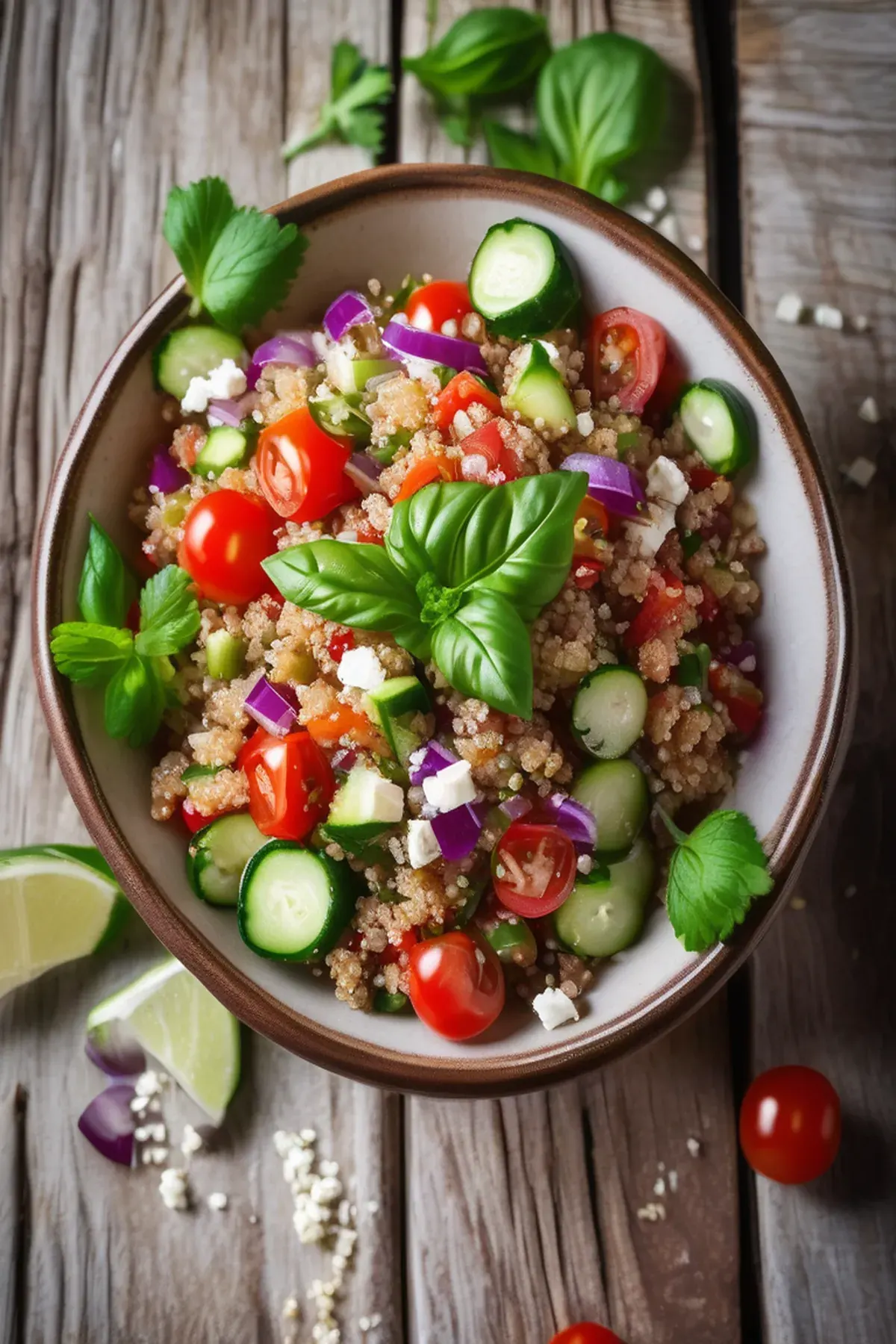 This Turkish quinoa salad has become one of my go to dishes when I want something that's both nutritious and incredibly easy to pull together. The whole thing comes together in under an hour, and honestly, most of that time is just waiting for the quinoa to cook. What I love most is how versatile it is and how budget friendly it remains, especially when tomatoes and cucumbers are in season. Quinoa is absolutely packed with protein and all nine essential amino acids, making this salad genuinely filling on its own. The combination of fresh herbs, tangy lemon, and creamy feta creates this beautiful Mediterranean vibe that tastes like you spent way more time in the kitchen than you actually did.