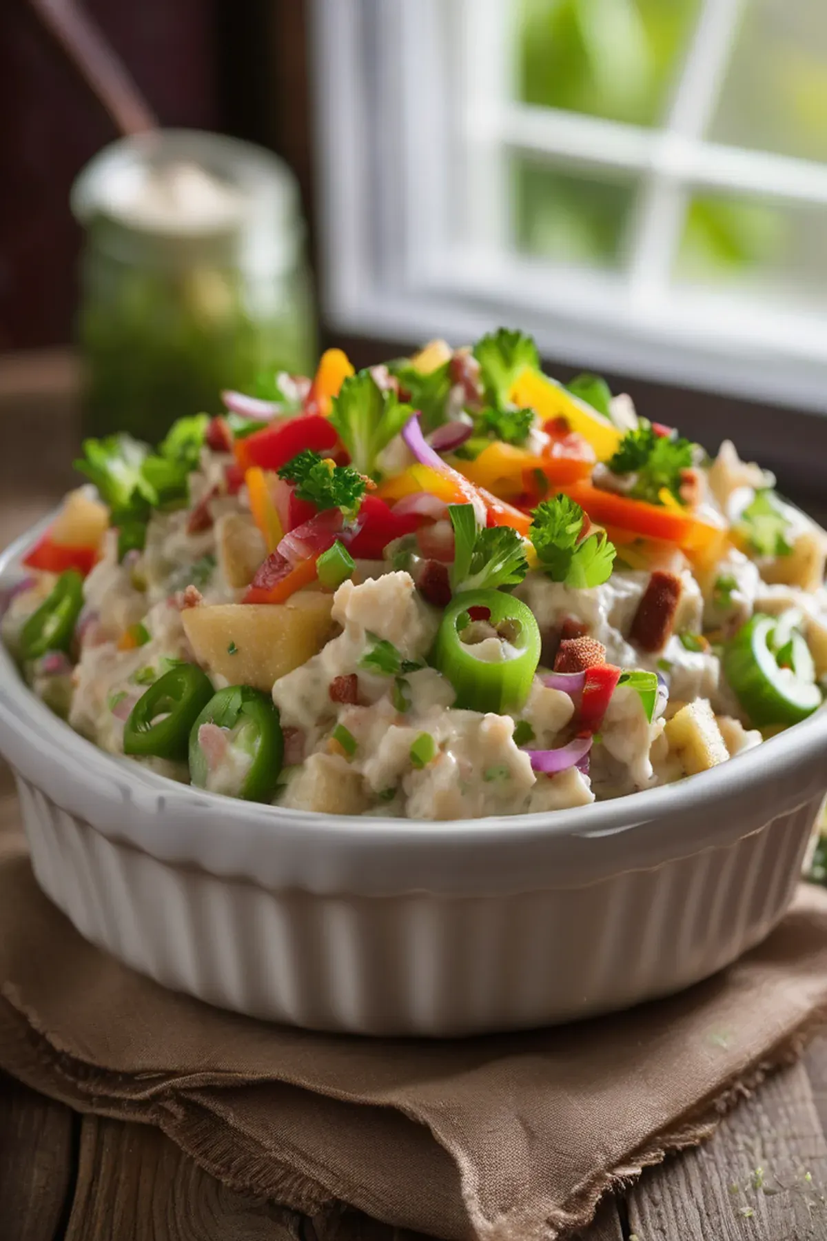 Add the mayonnaise mixture to the bowl with the vegetables and stir until well combined.