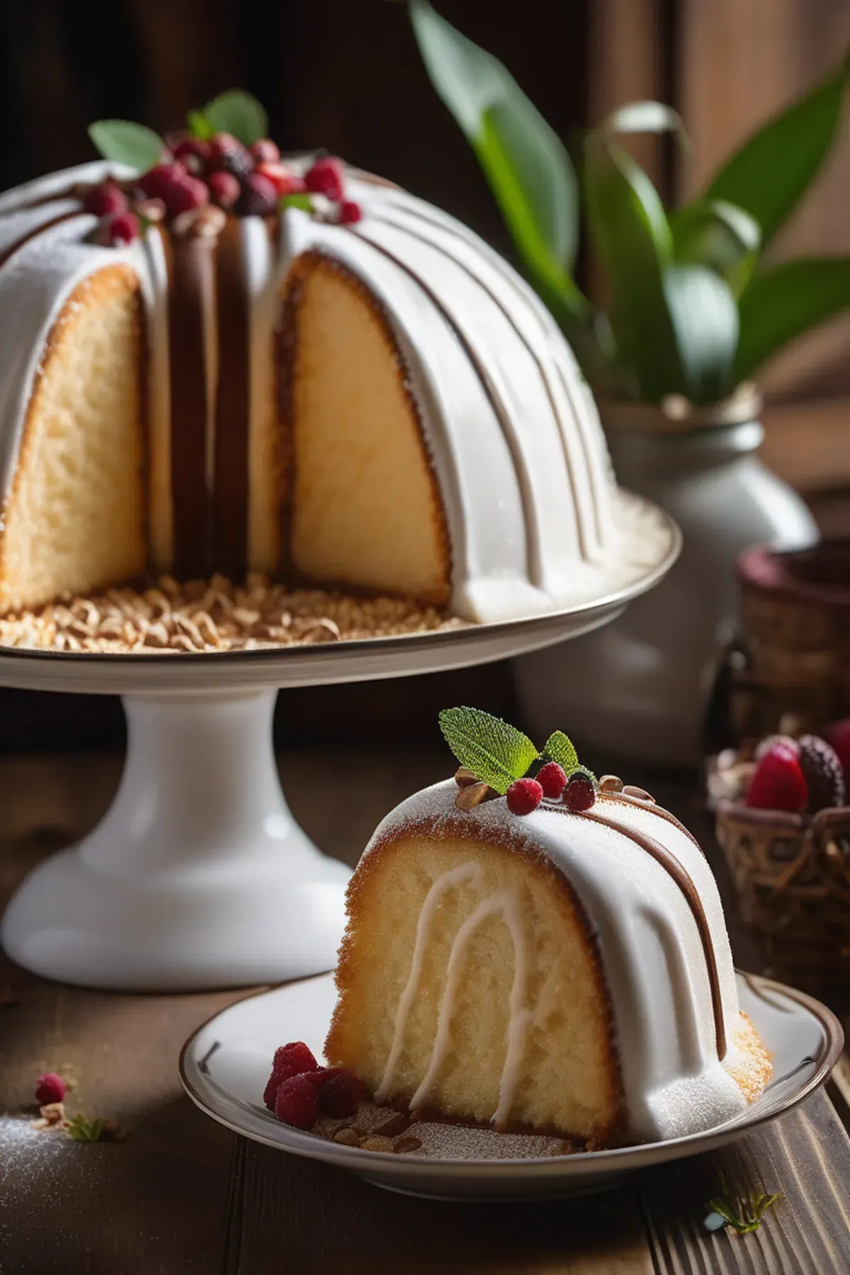 Glaze the bombe with confectioner's glaze before serving.