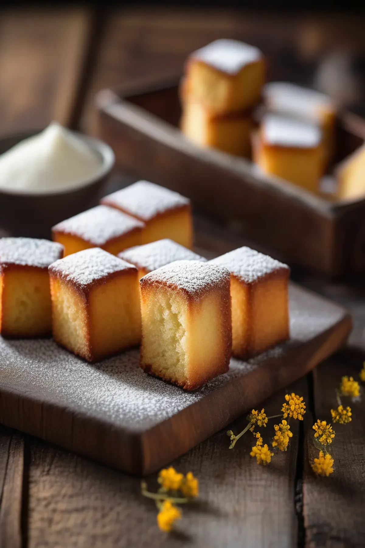 Delicate French cakes with a hint of vanilla and a light, airy texture.
