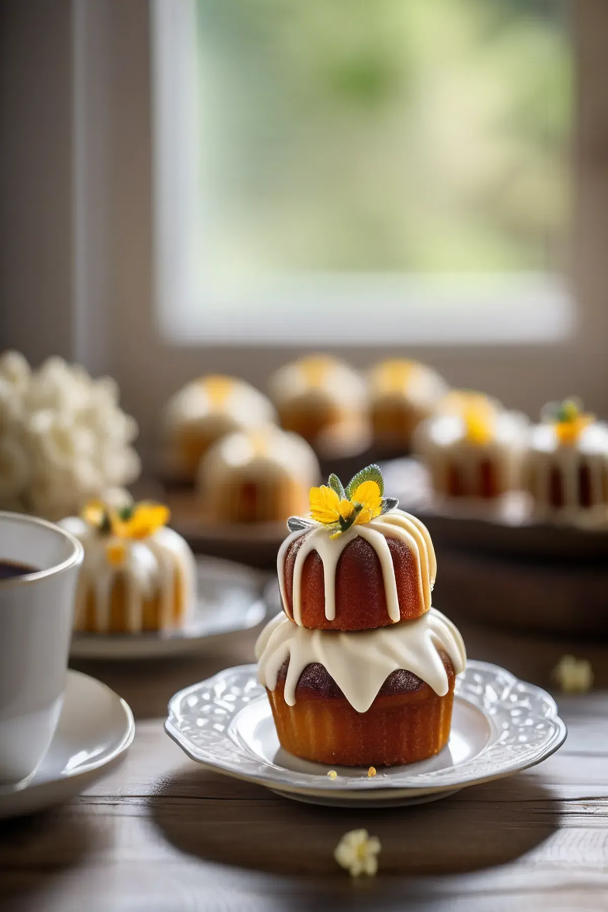 Moist and flavorful vanilla mini bundts, perfect for a snack or dessert.