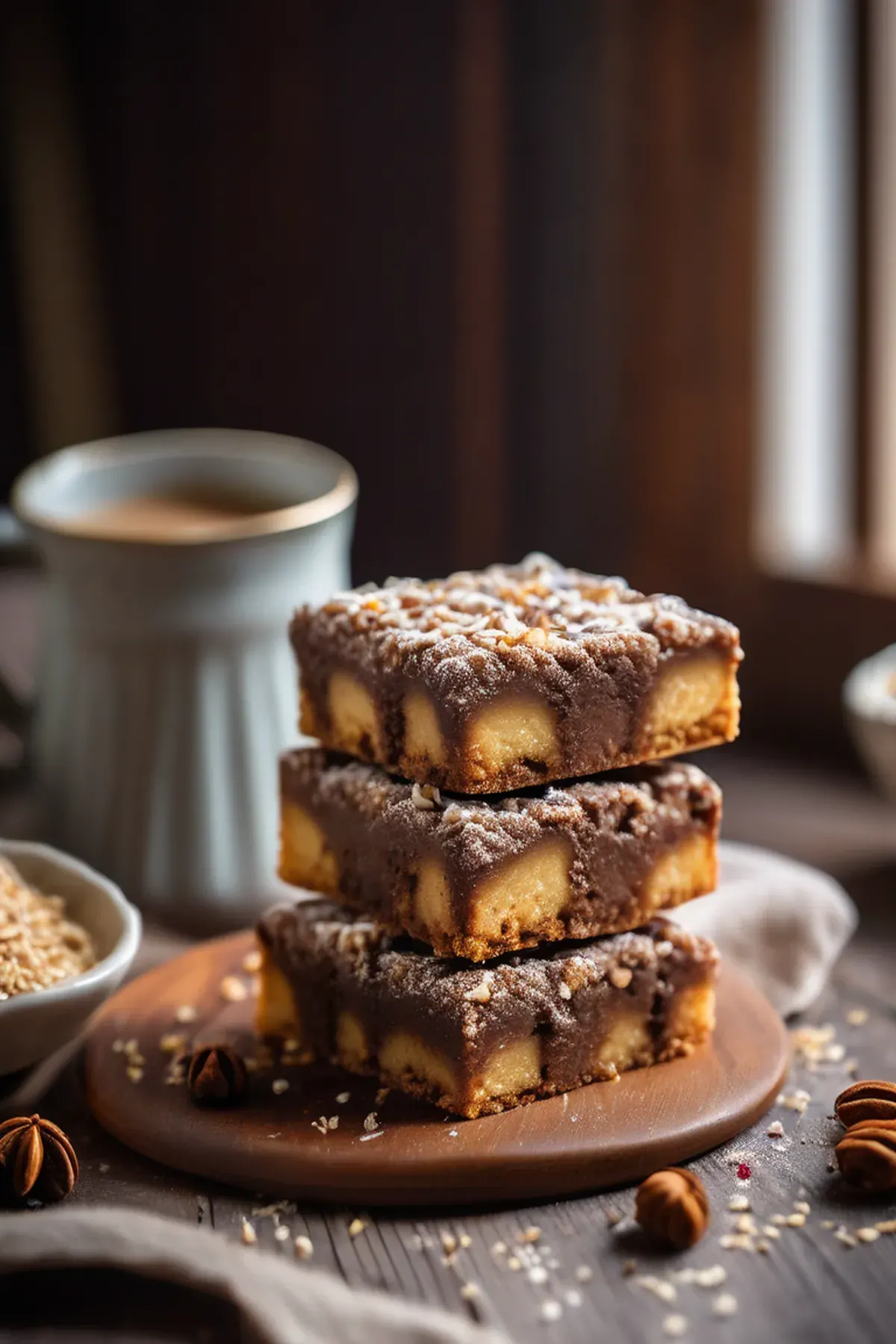 Stir in the rolled oats, brown sugar, and chopped nuts.