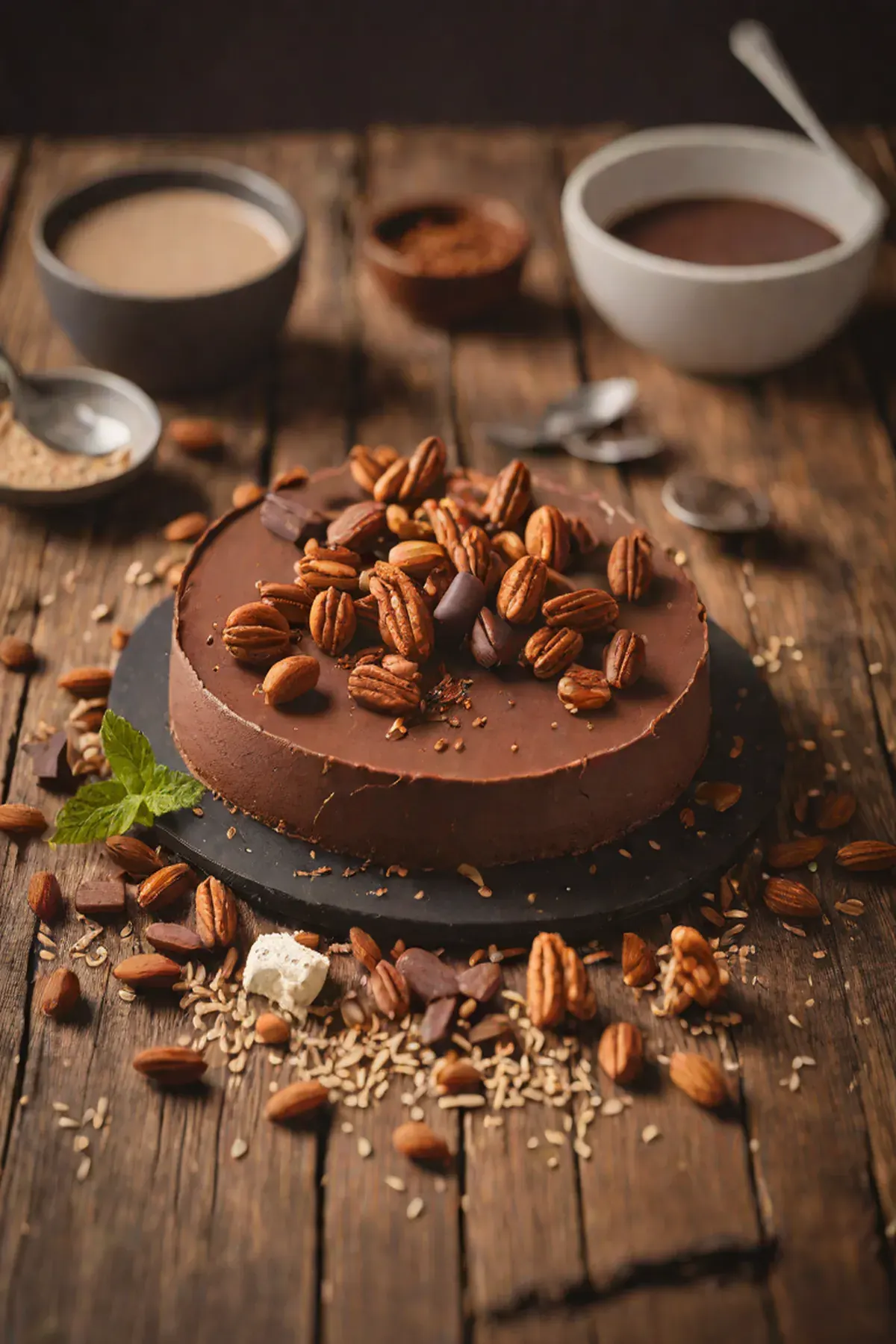 In a separate bowl, mix together the vegan cream cheese, silken tofu, maple syrup, 1/2 cup cocoa powder, and vanilla extract until smooth.