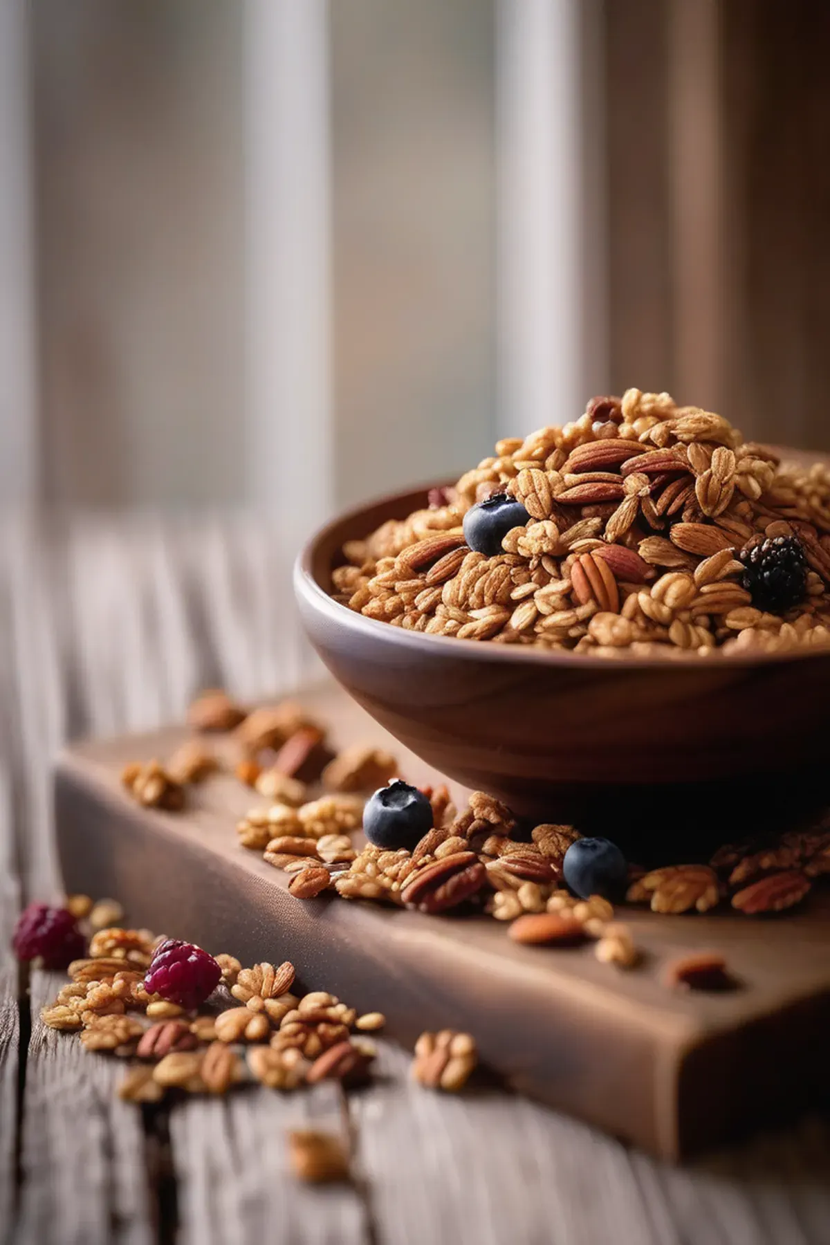 My favorite granola recipe has become legendary among friends, and I'm thrilled to share it with you. This wholesome blend combines hearty oats with nutrient dense almonds, millet, and wheat germ, creating a breakfast that's both delicious and nourishing. The beauty of this recipe is its simplicity: just 15 minutes of prep work gets everything mixed and ready for the oven. Hemp seeds and flax seeds add omega 3 fatty acids that support heart health, making every spoonful count nutritionally. You can customize the dried fruit and additional nuts based on what you have on hand, making it incredibly budget friendly and adaptable. In under an hour, you'll have a homemade granola that rivals anything store bought.