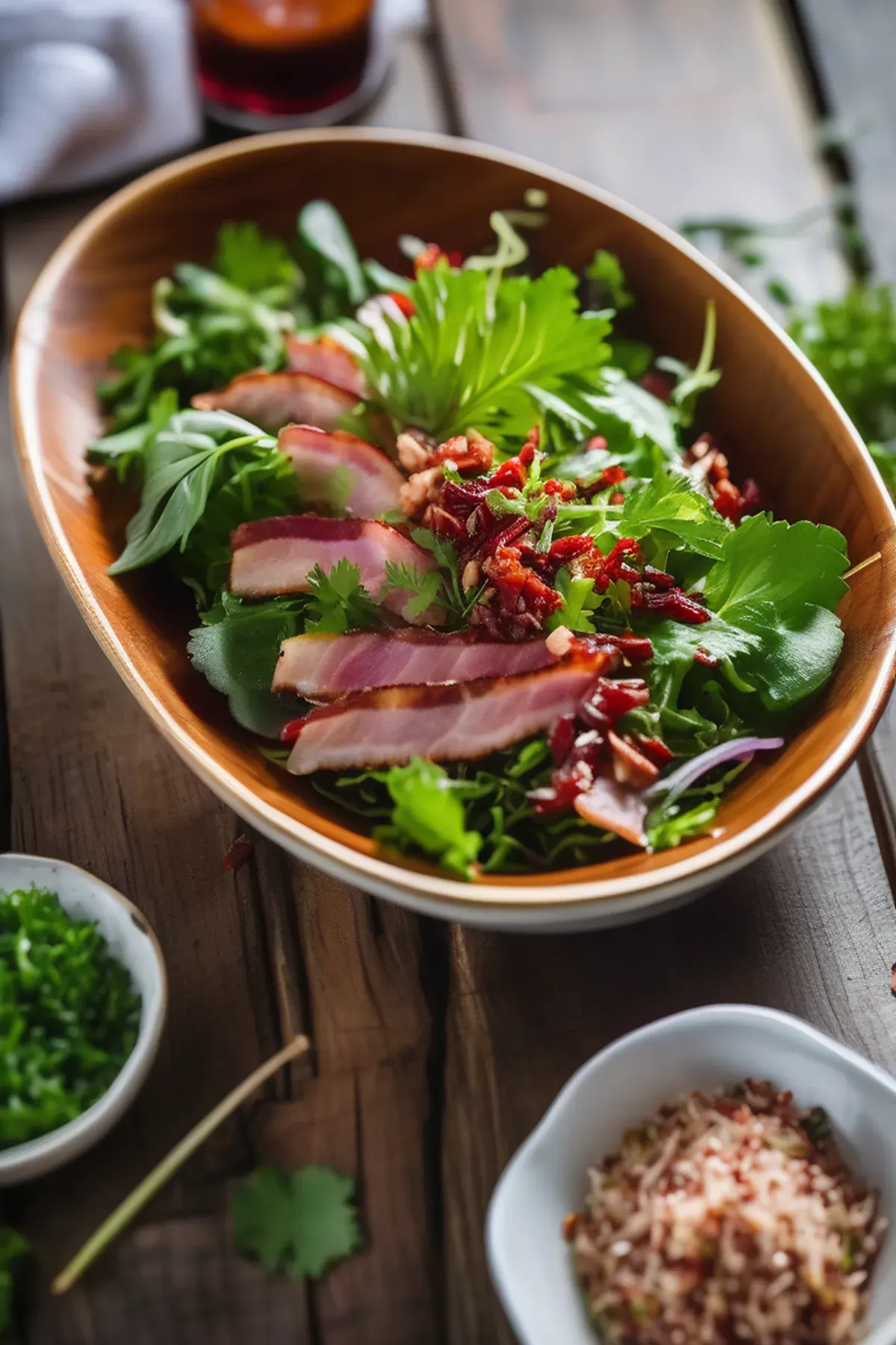 A refreshing salad featuring crispy Vietnamese bacon, mixed greens, and a tangy lime dressing.