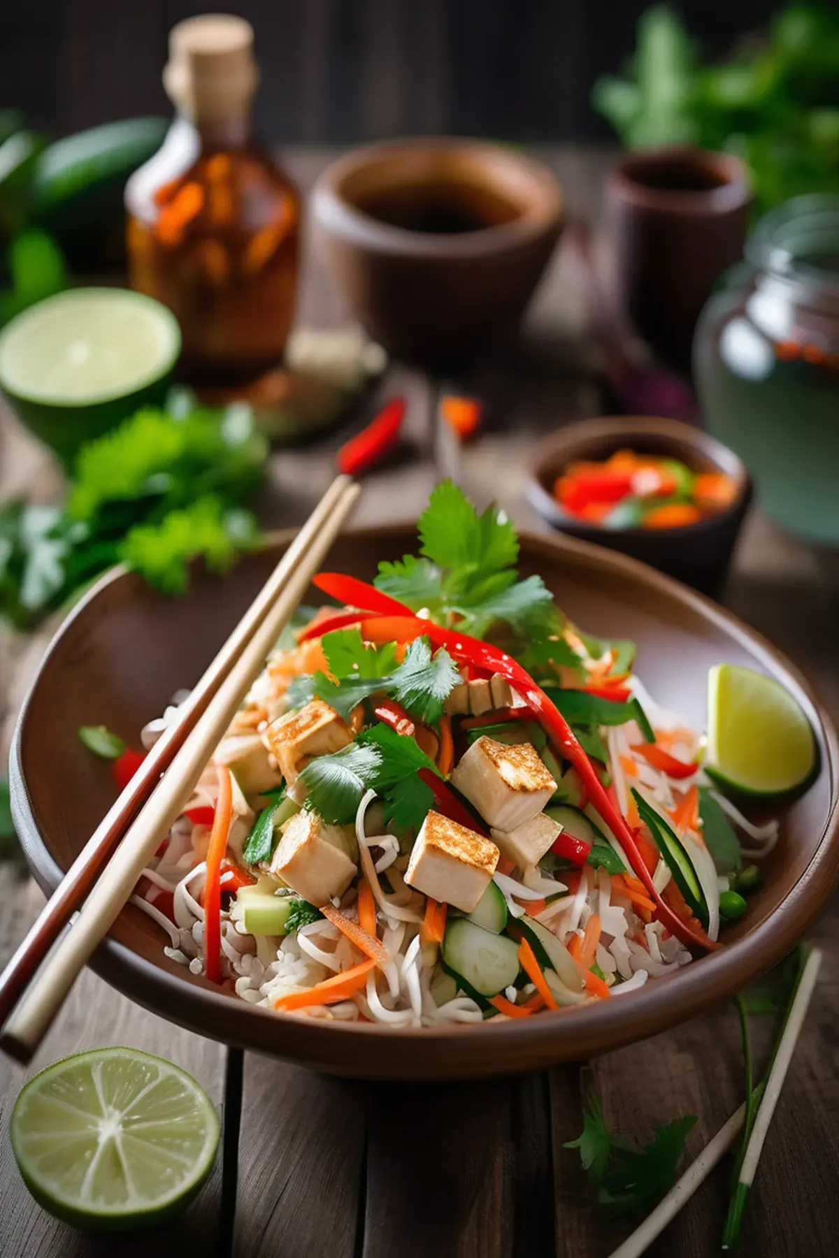 A refreshing salad from Vietnam, made with crispy tofu, crunchy veggies, and a zesty dressing.
