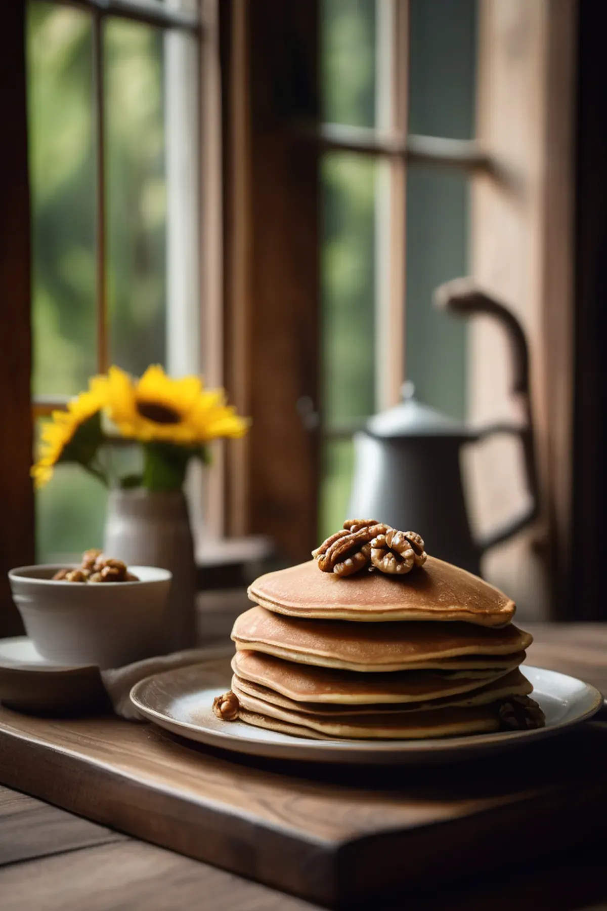 These walnut stuffed pancakes are a delightful treat that brings together warm spices and floral notes in the most unexpected way. I love making them because they're surprisingly simple, coming together in just over an hour from start to finish. Walnuts are packed with omega 3 fatty acids, which are wonderful for heart health, and they add a lovely earthiness to the sweet filling. The combination of rose water and orange blossom water gives these pancakes an elegant, aromatic quality that feels far more impressive than the minimal effort required. Serve them warm with Greek yogurt for a breakfast or dessert that tastes like you've spent hours in the kitchen.