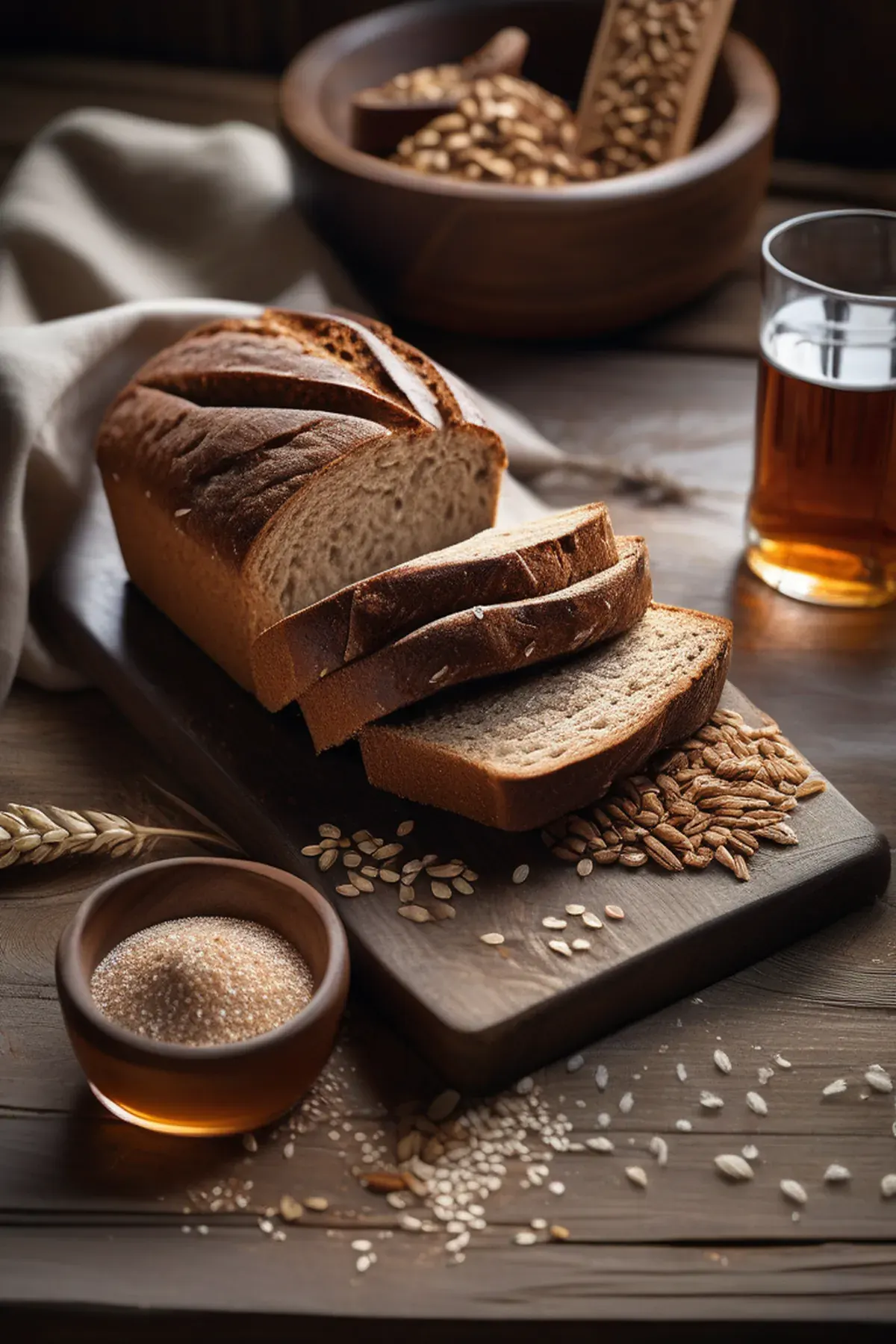 A hearty, nutty wholemeal loaf with a dense crumb and rustic crust, perfect for sandwiches or toasting with butter and jam.